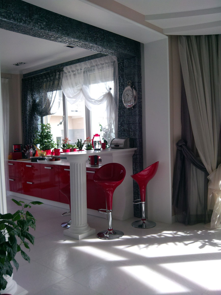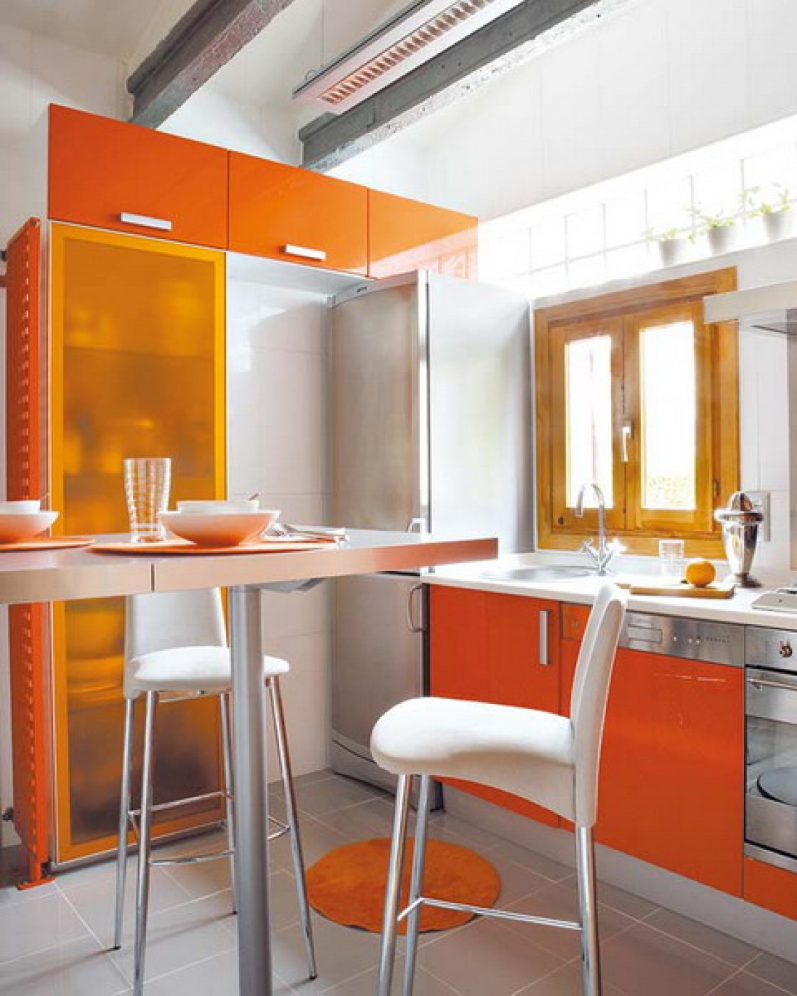 في غرف أكبر تعمل كإضافة أنيقة ، الديكور ، إذا كنت تريد. يمكنهم بسهولة كسر المطبخ منطقة - للطبخ واستقباله.