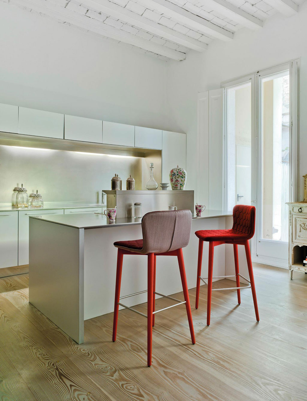 غالبًا ما يتم شراء الموديلات الطويلة في المطبخ الجزر. التي تعد بمثابة مكان ، على سبيل المثال ، لتناول وجبة خفيفة سريعة أو التسكع مع كوب من الشاي أو القهوة العطرية.