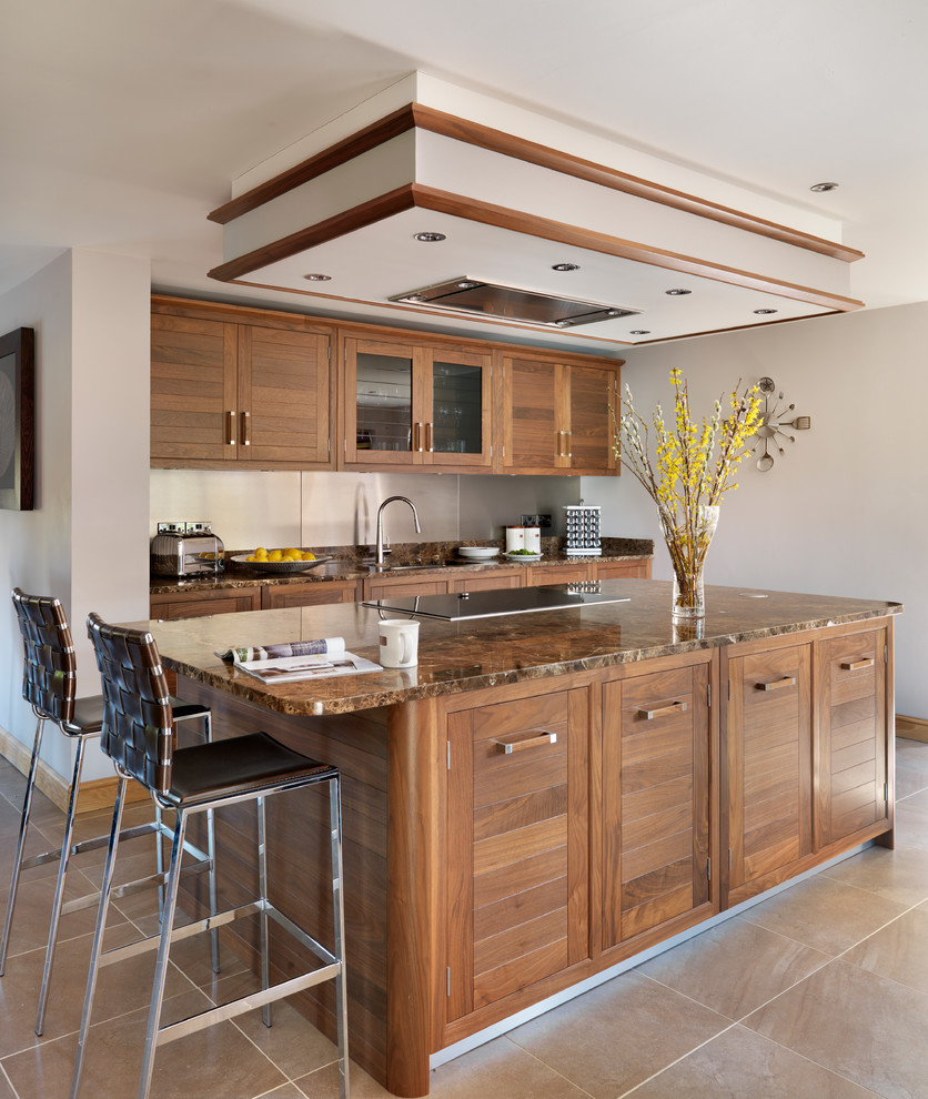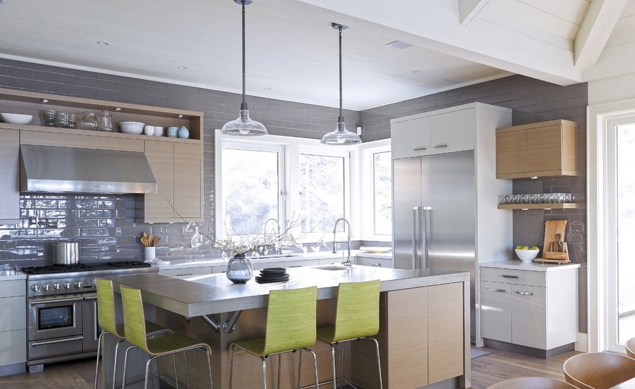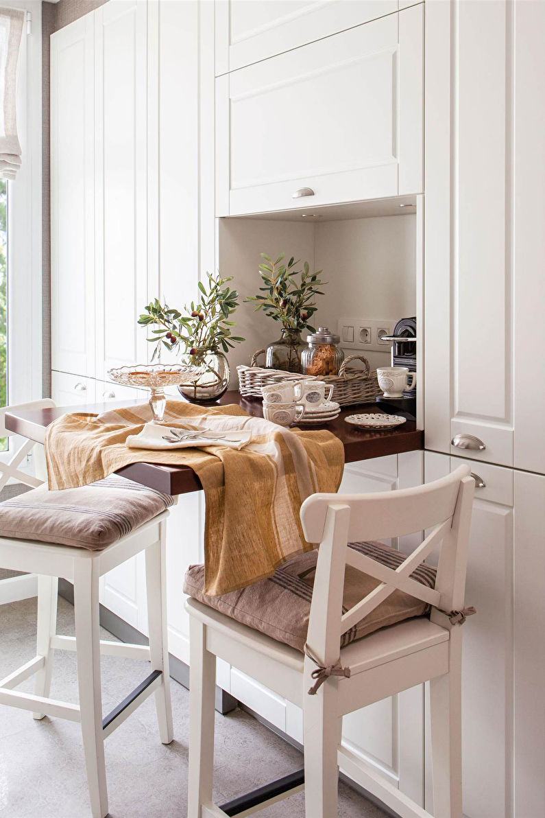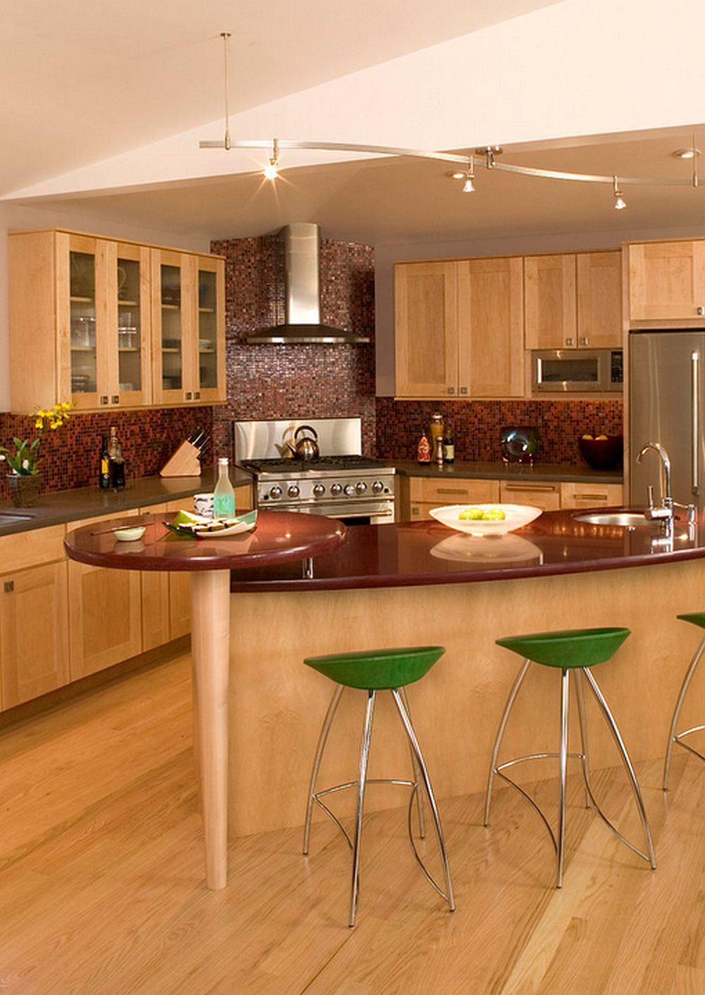 في مزيج ناجح مع العداد ، يعتبر خيار تصميم حديثًا نسبيًا للمطابخ. مثالي للغرف الصغيرة ، لأن الأبعاد مدمجة تمامًا.