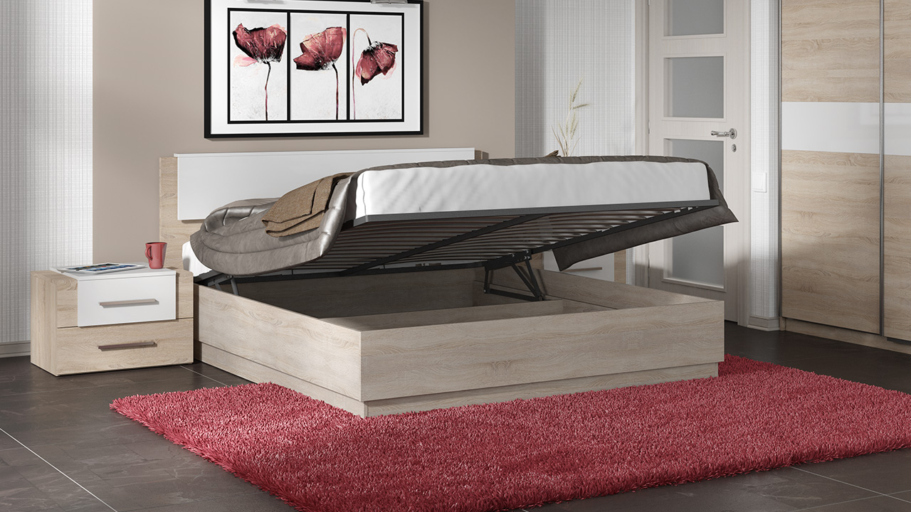 سرير مزدوج مع آلية رفع مصنوعة من المواد التالية: