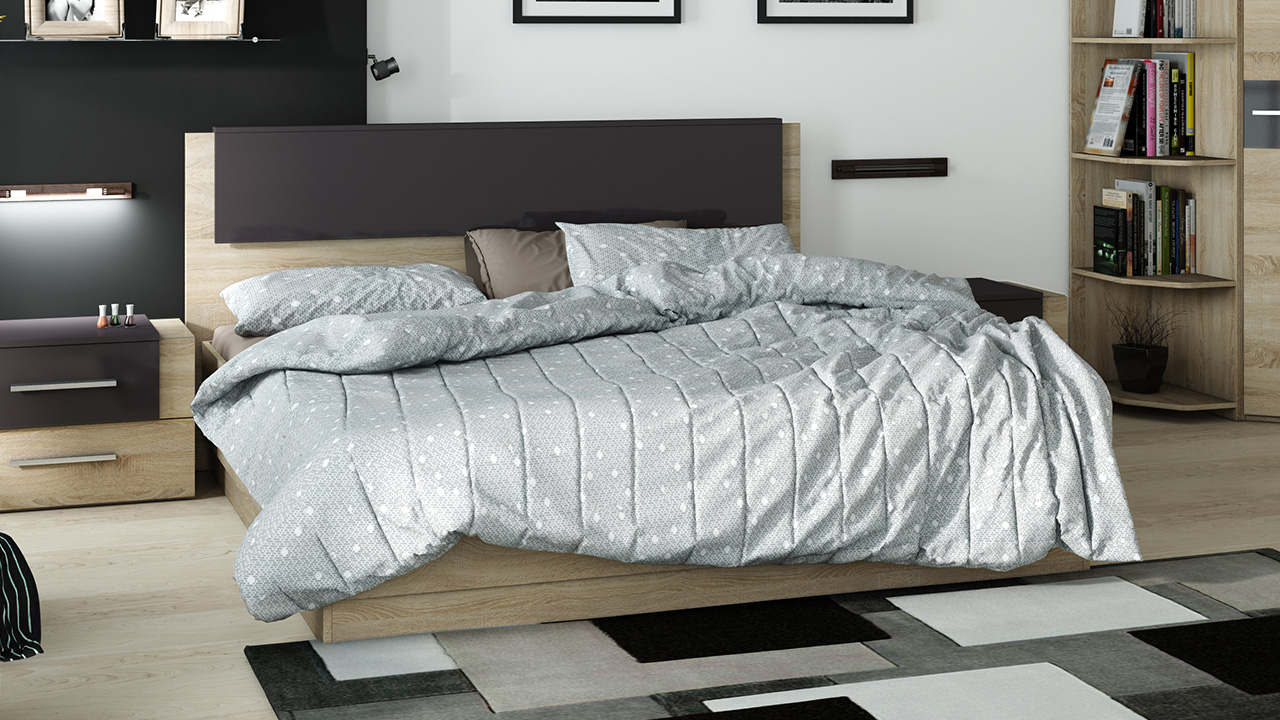 ليس من الضروري ربط السرير بأثاث آخر موجود في غرفة النوم ، واختيار سرير من مجموعة واحدة مع خزانة ملابس وطاولة ملابس وطاولات بجانب السرير.