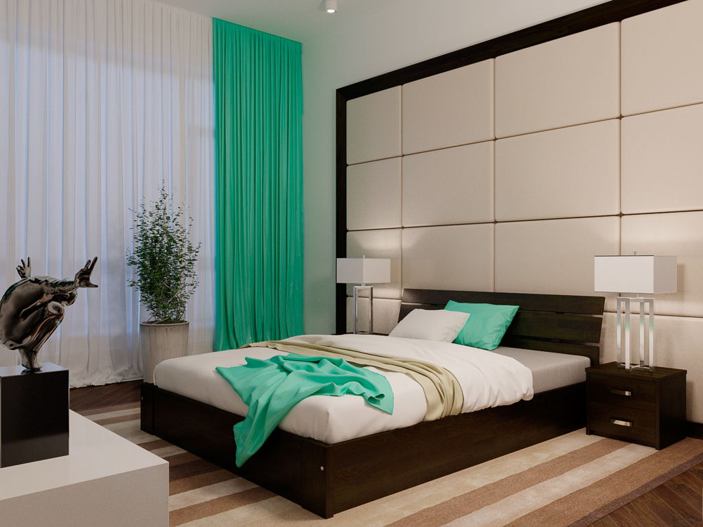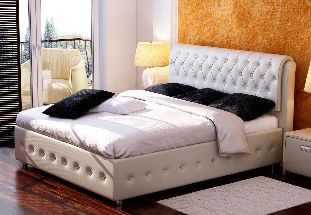 تم تجهيز سرير مزدوج بصندوق كبير فسيح أنيق ، مما يزيد من وظائف التصميم. تصميم أنيق بتناغم تزيين الداخلية.