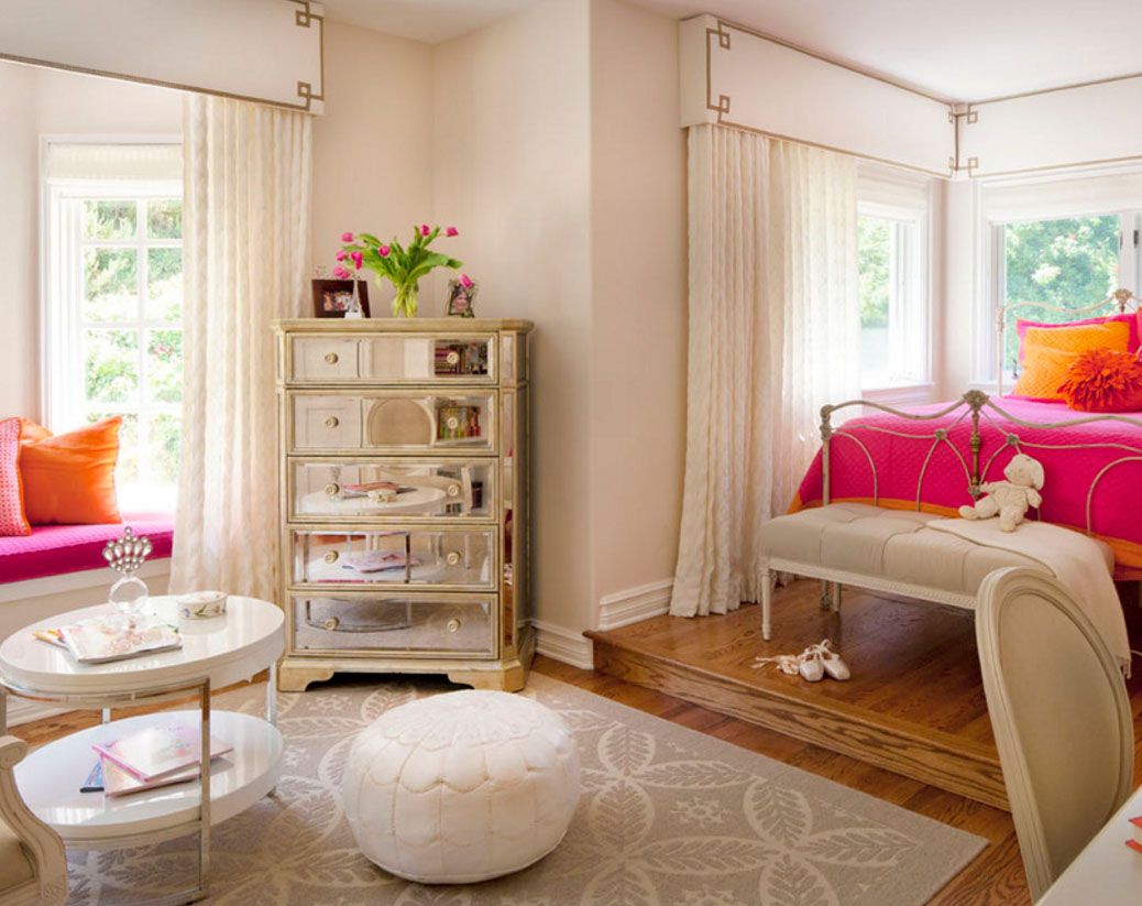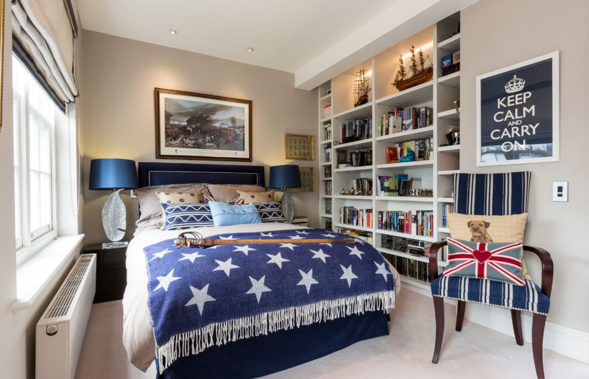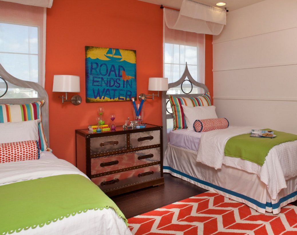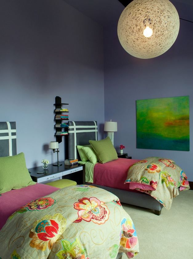 على سبيل المثال ، يمكنك جعل المواد من السرير والرفوف النقيض. سيتم الجمع بين الرفوف مع الستائر التي اخترتها أو الفراش.