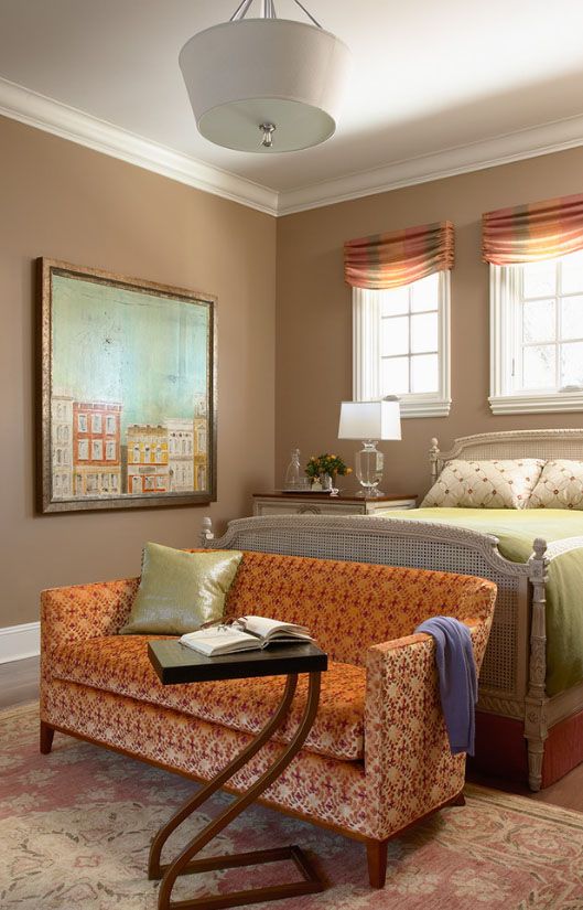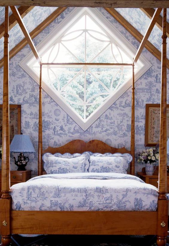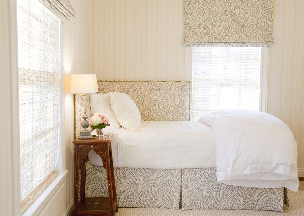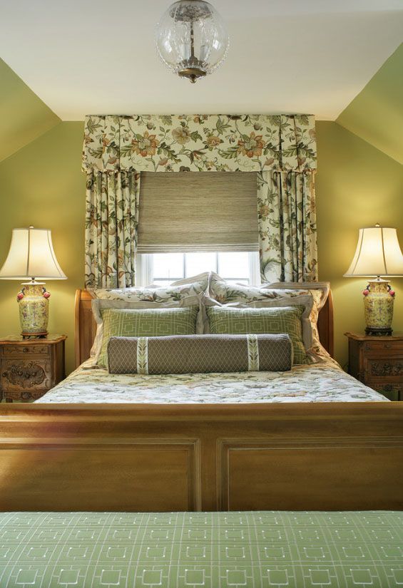 - ستكمل غرفة النوم العتيقة بشكل مثالي السرير ذي الشكل المستدير ؛ اختر النسيج لللوح الأمامي بزخرفة نباتية صغيرة.