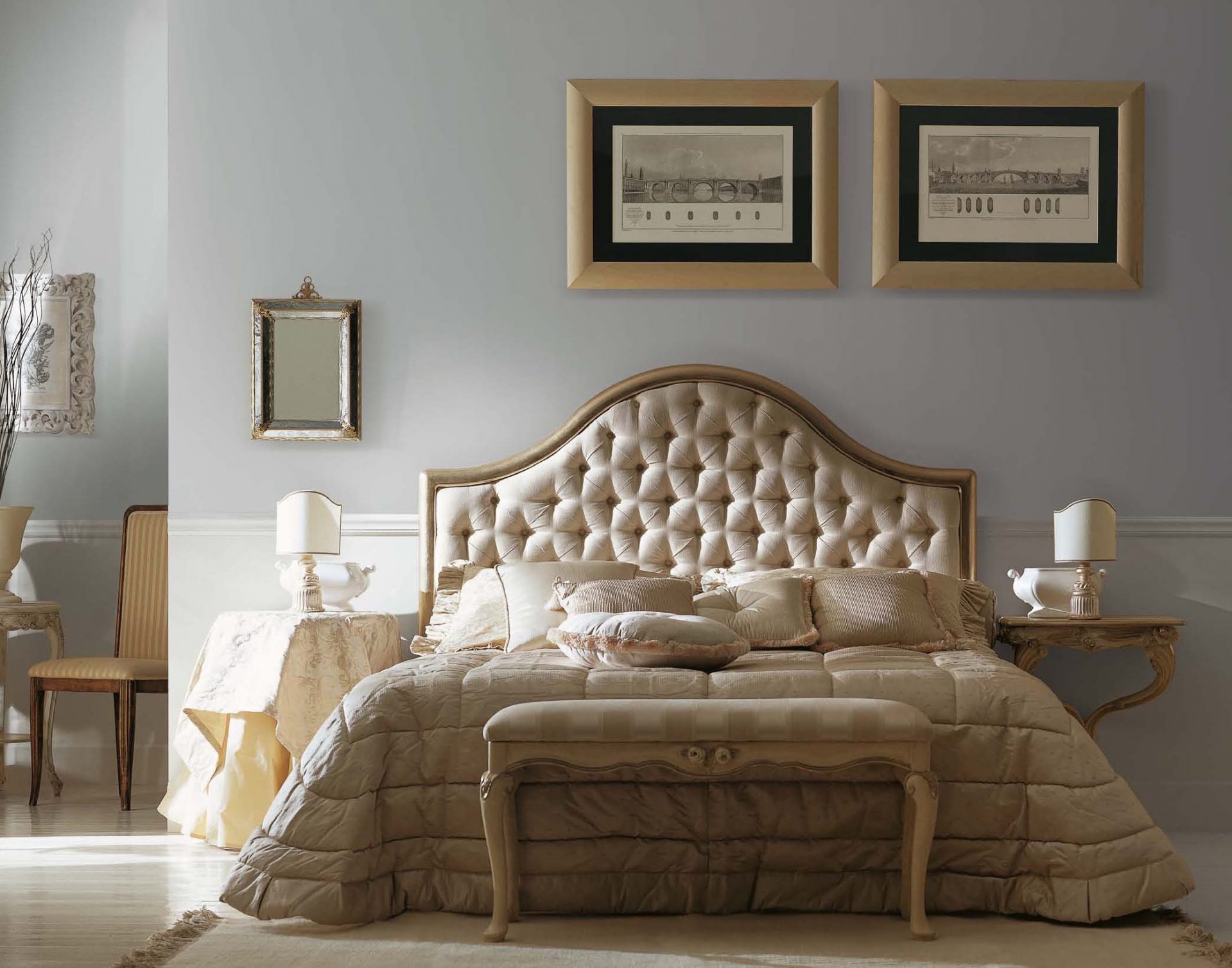 - يصعب تخيل السرير الداخلي الباروكي بدون عناصر منحوتة. يجب أن تكون اللوح الأمامي الخشبي مرتفعًا ، فمن الأفضل تغطيته بالطلاء اللامع أو الورنيش.