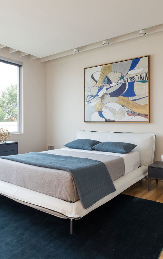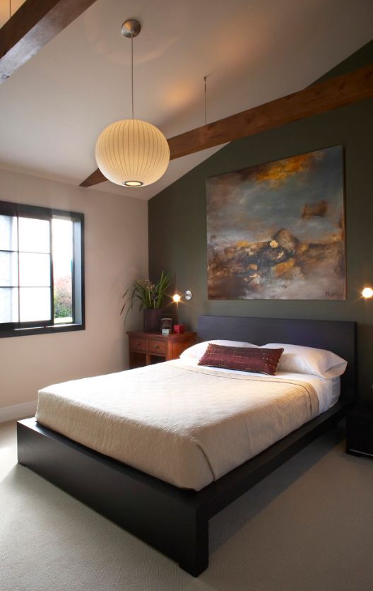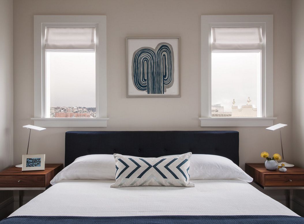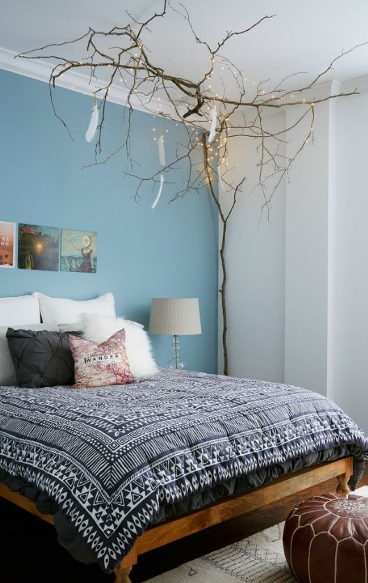 يمكنك أيضا جعل مكانة على رأس السرير. إذا أضفت القليل من الإضاءة الناعمة ، فستكون الغرفة مريحة للغاية.