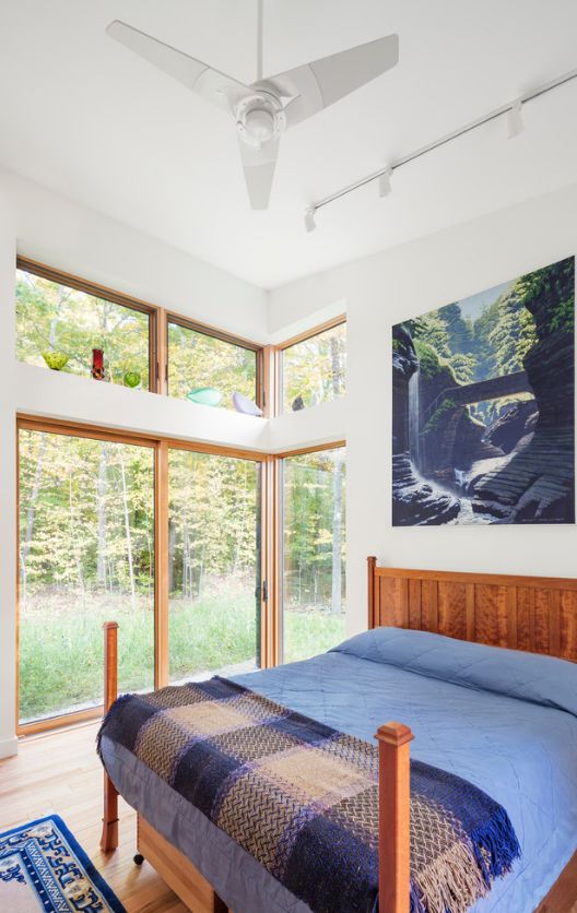 تسمح لك الأرفف الزجاجية بزيادة حجم غرفة النوم بصريًا. ومع ذلك ، فهي هشة للغاية وتتطلب معالجة متأنية.
