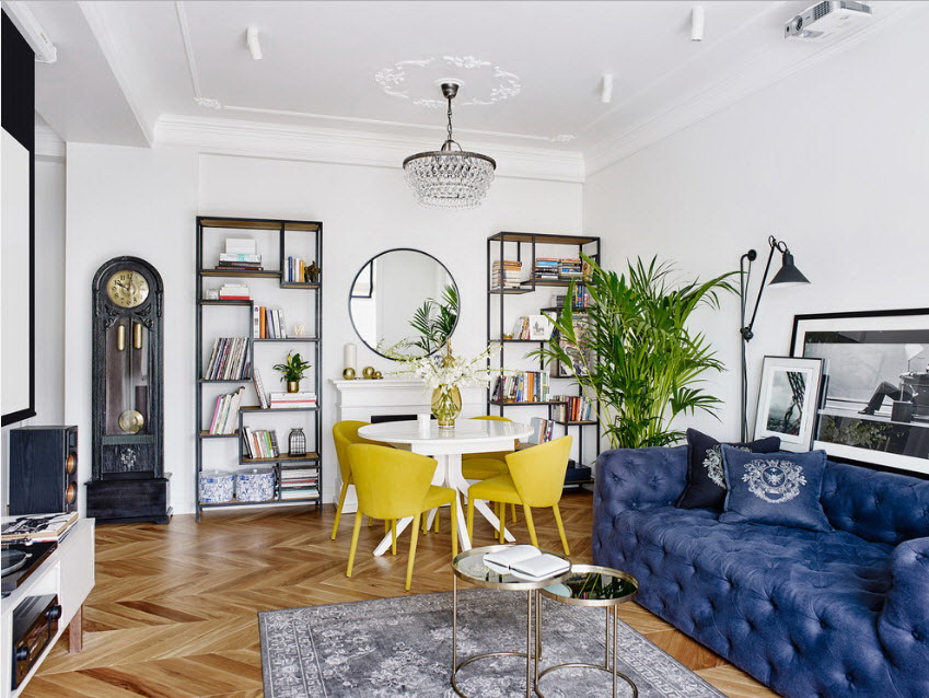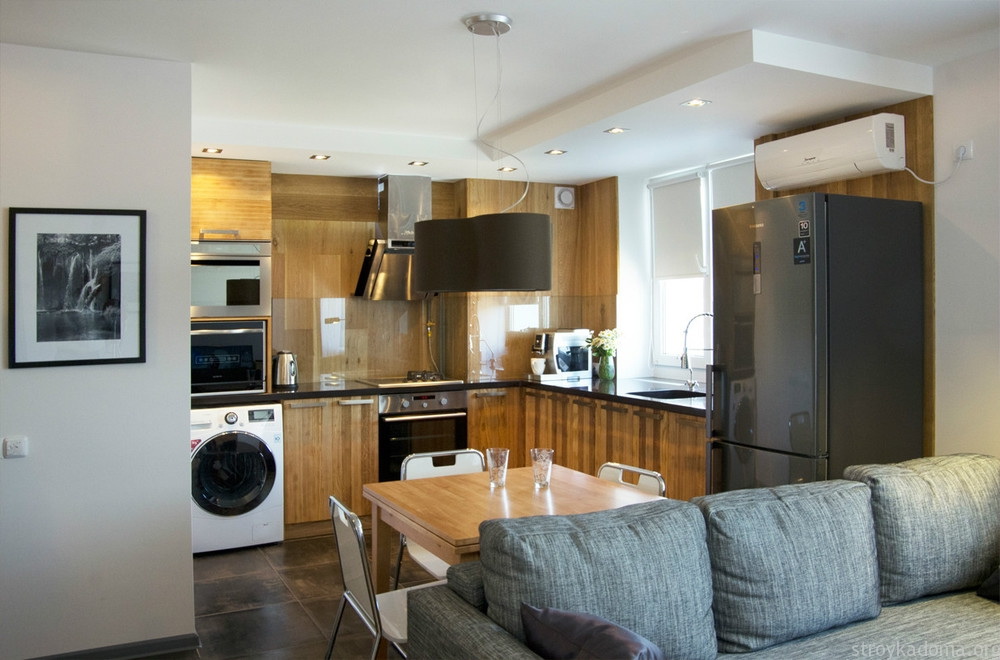 في العديد من المجمعات السكنية لا توجد غرفة منفصلة لتناول الطعام (مطبخ كبير) وغرفة معيشة ، وتم تصميم شقة صغيرة ستوديو. لذلك ، قد تحتاج إلى التخطيط لوضع غرفة الطعام وغرفة المعيشة في نفس الغرفة. هذا التصميم سوف يساعد.