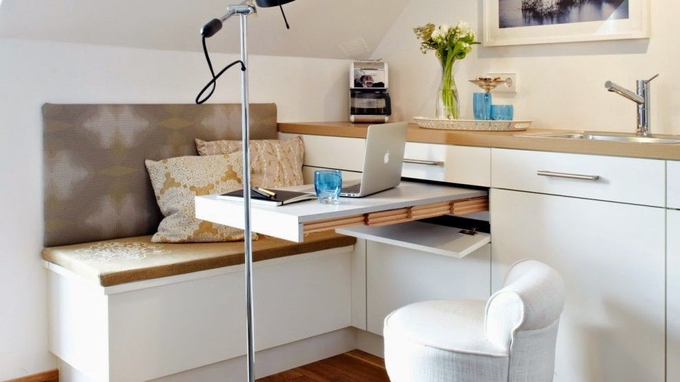إذا كنت تخطط جيدًا ، يمكنك الاستمتاع حتى بالمساحة الصغيرة المتاحة لإنشاء منزلك. مكتب. استخدم الحواف لإيجاد مساحة إضافية. قد لا تبدو هذه الأماكن مناسبة للأثاث ، ولكن قد تكون الخيارات المختلفة مع الأثاث القابل للطي والمتحركة مفيدة.