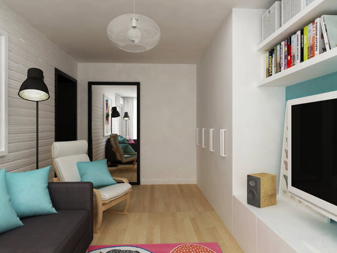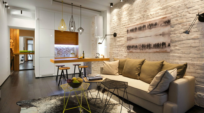 التصميم الداخلي له تأثير كبير على إنشاء مساكن عالية الجودة من شقة صغيرة. قم بتنظيم المساحة بالفكرة: اجعل مكانًا للفنون الجميلة في منطقة غرفة المعيشة أعلى الأريكة أو اترك كرسيًا الأبواب وحامل للأحذية بحيث يكون لك وللضيوف مكان ترتديه وتخلع حذائك.