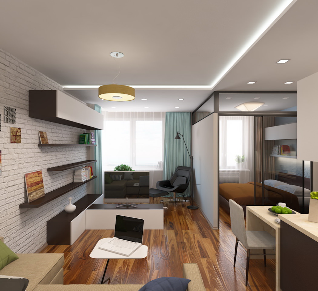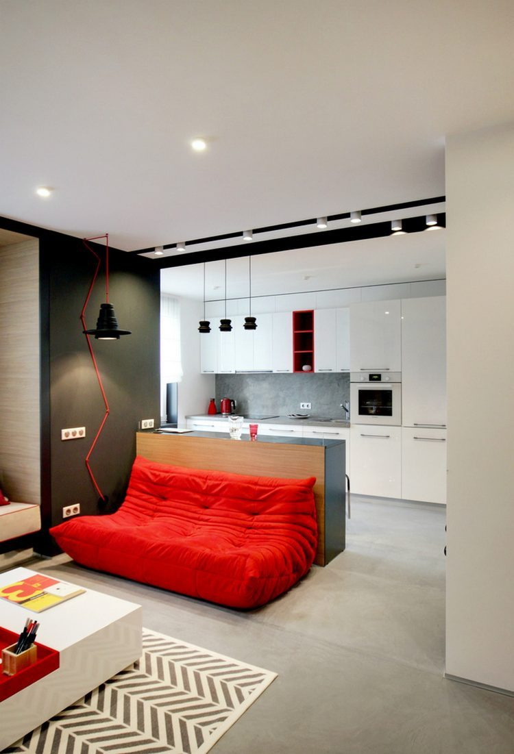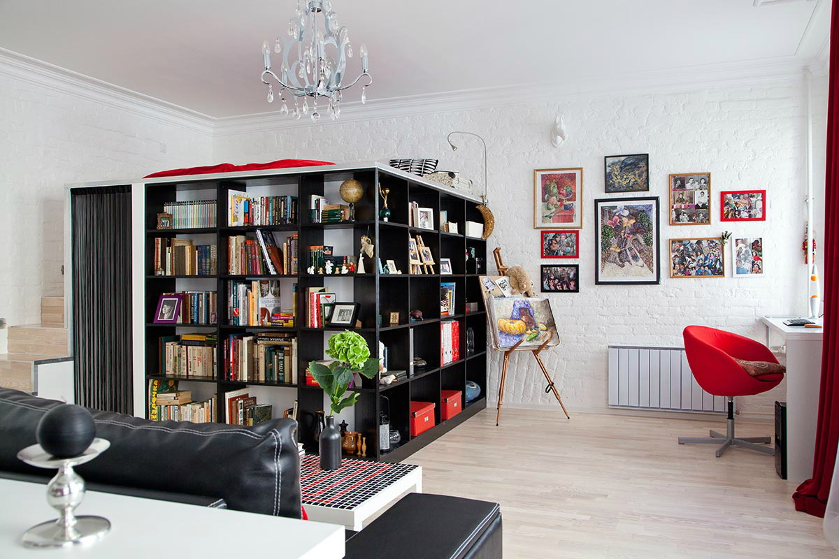 العيش في شقة من غرفة واحدة ، كما هو الحال في المنازل الصغيرة الأخرى ، هو تنظيم استراتيجي للخطة وديكور الغرفة من أجل الاستفادة القصوى من المساحة. تحويل غرفة واحدة إلى مساحة متعددة الوظائف ، مع تسليط الضوء على الأجزاء الفردية لأنشطة محددة. على سبيل المثال ، إذا كنت تعمل من المنزل ، فضع مكتبك في زاوية وقم بتعليقه على رف الكتب لمشاركته مع منطقة النوم. تساعد الأقسام أيضًا في تصميم شقة من غرفة واحدة ويمكن أن تكون بأشكال مختلفة ، مثل جدران قابلة للطي أو تعليق الستائرالتي توفر أجواء مجانية.