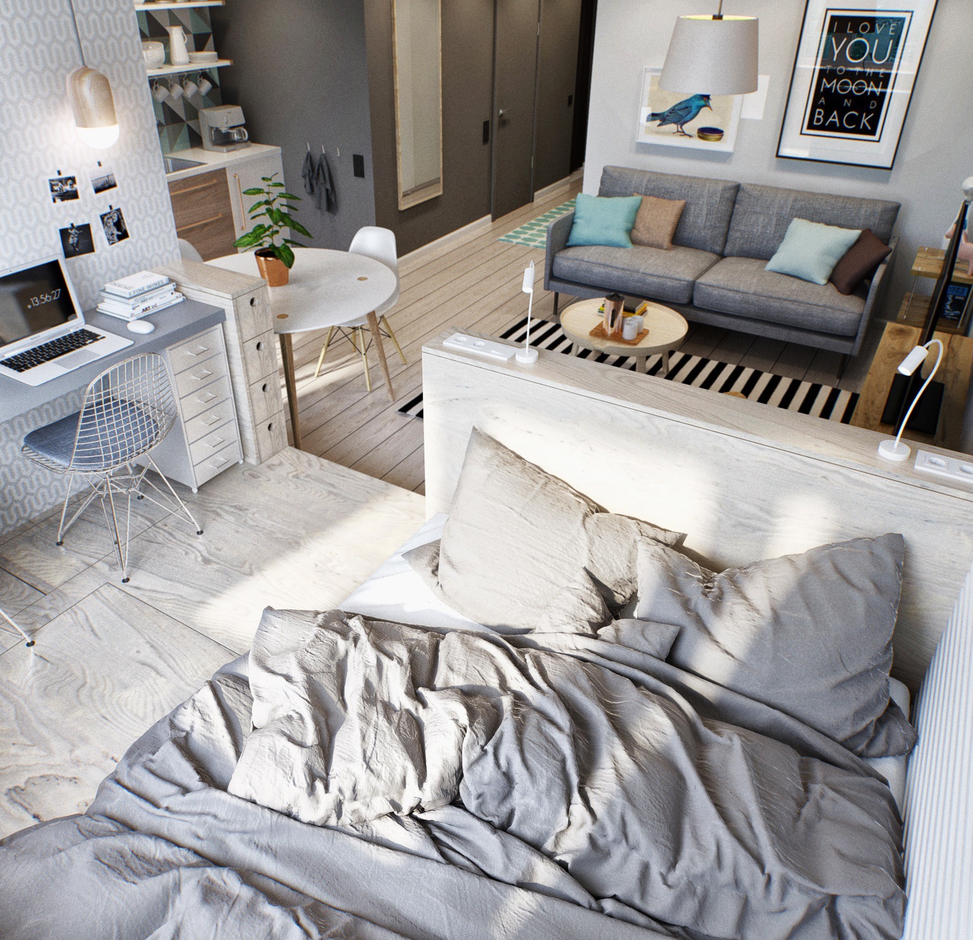 حول شقة من غرفة واحدة بخيالك وأفكارك حول الغرفة المثالية ، ولكن لا تنسى أن تكون مصدر إلهام لهذه الأمثلة من التصميم الداخلي المدروس. ابحث عن الميزات الصحيحة ، فكر في المزايا ، فكر في التفاصيل عند التثبيت ، وستجد نفسك في منطقة سكنية مخصصة حقًا.