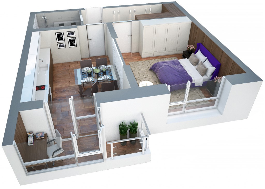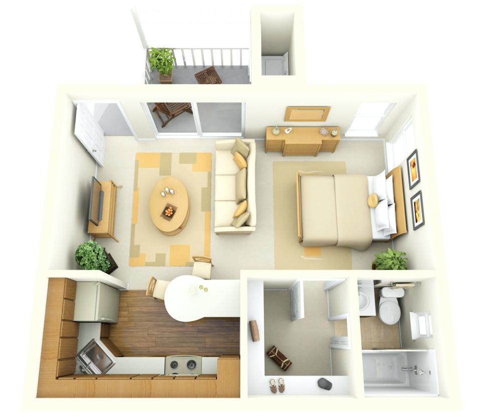 تصميم شقق بغرفة نوم واحدة