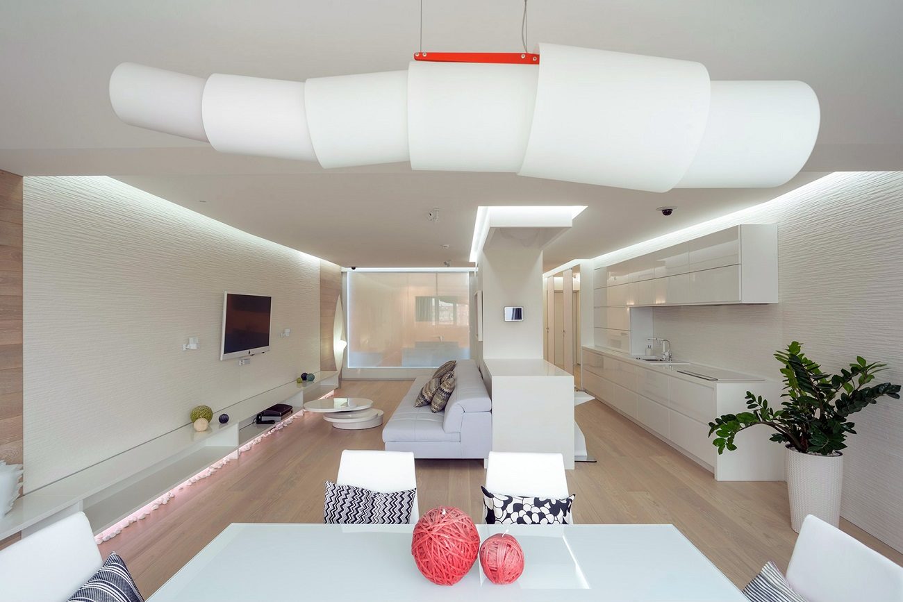 - ارتفاع سقف مقاومة الإحساس القيد. أنها تفتح الشقق الصغيرة وخلق وهم مساحة أكبر.
