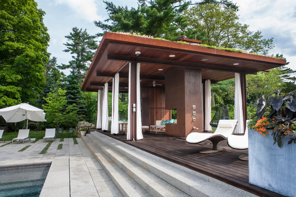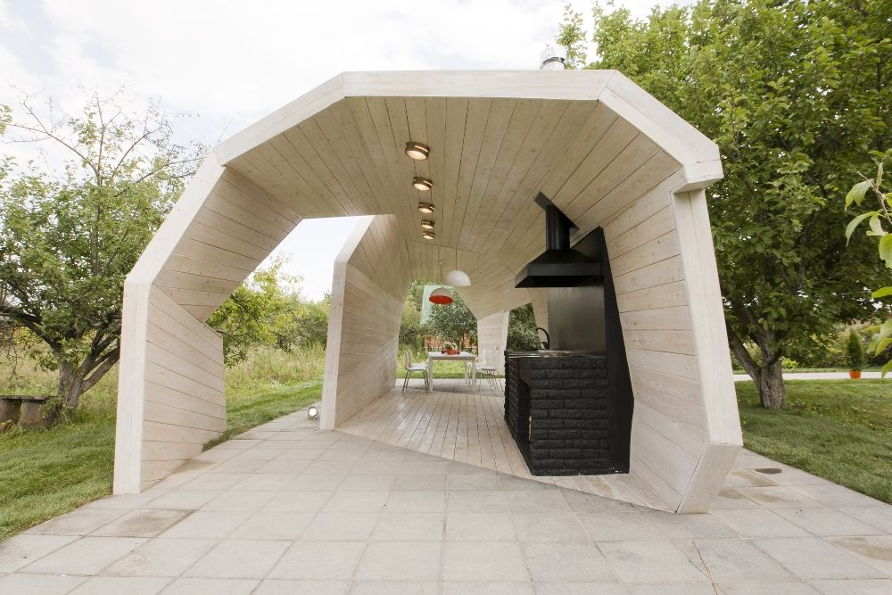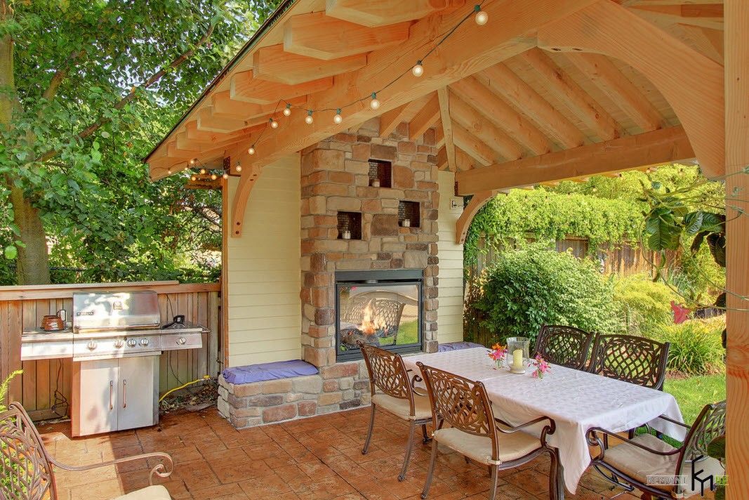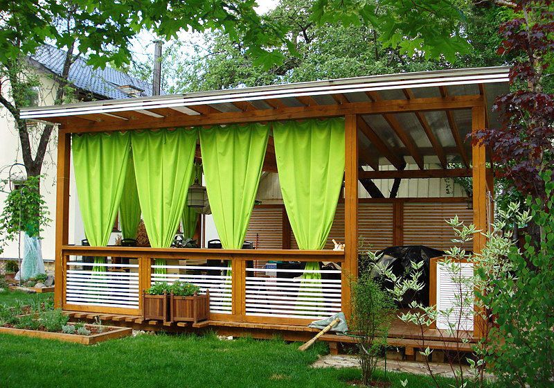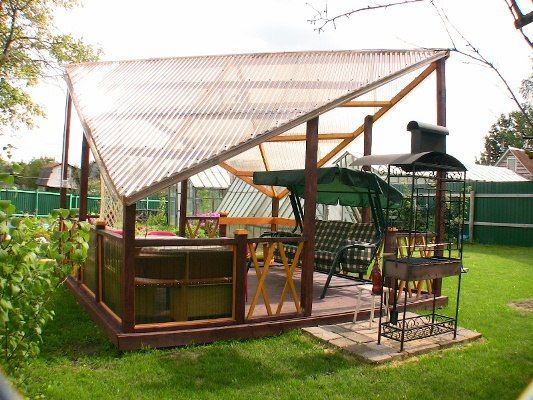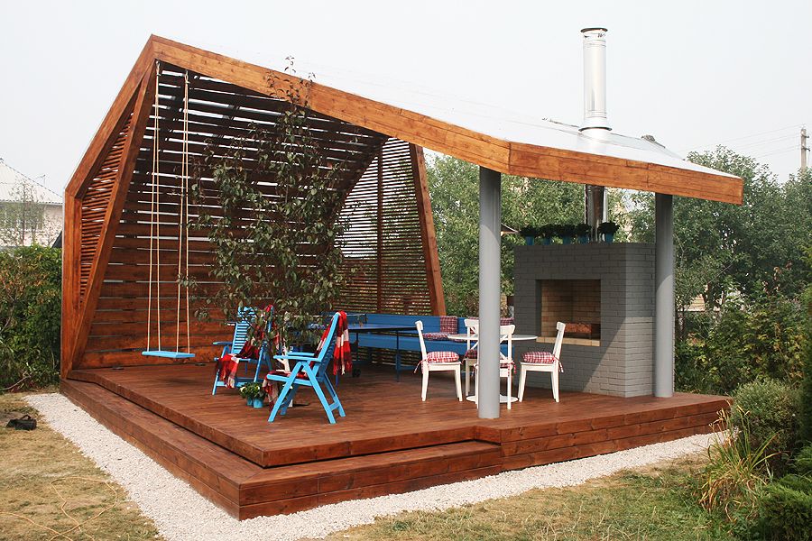 - عملي. هذه غرفة إضافية في الهواء الطلق حيث يمكنك قضاء وقت رائع. يمكنك قراءة ، استقبال الضيوف ، أكل الكباب المحمص على الفور ، ممارسة ألعاب الطاولة ، الغناء على الجيتار أو حتى الغفوة في الكرسي - الاحتمالات لا حصر لها.