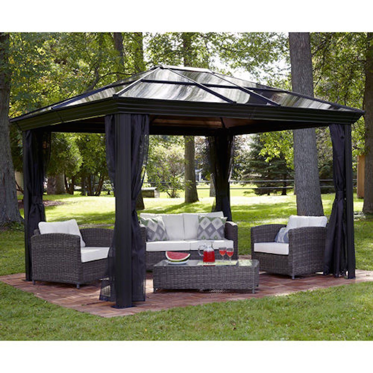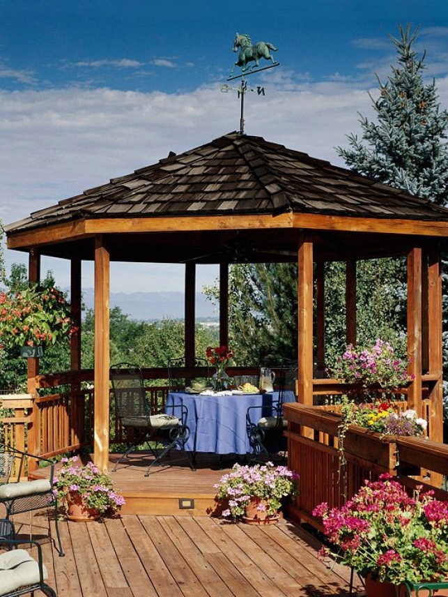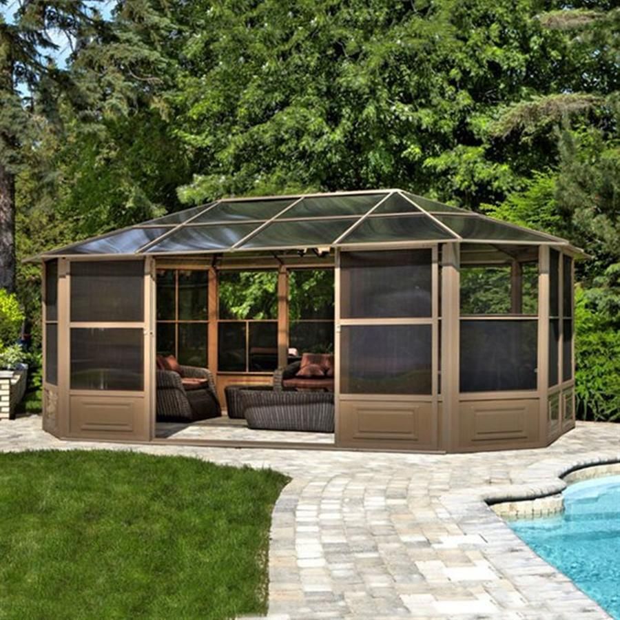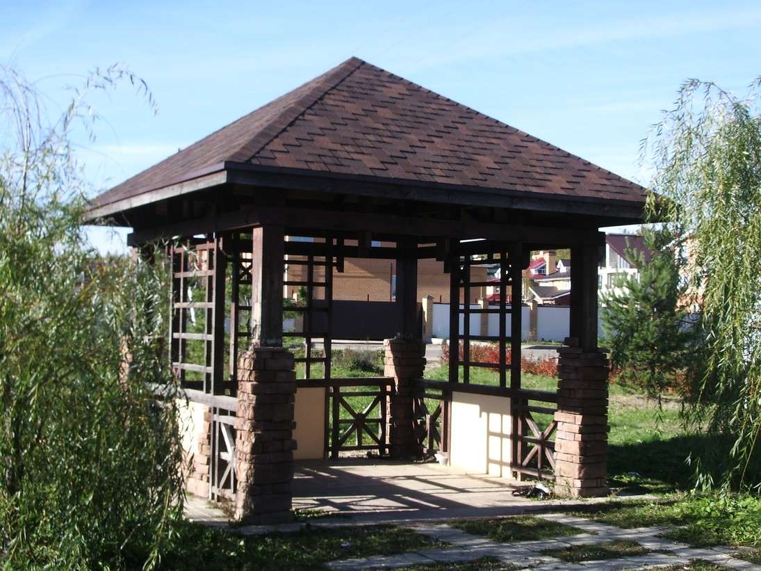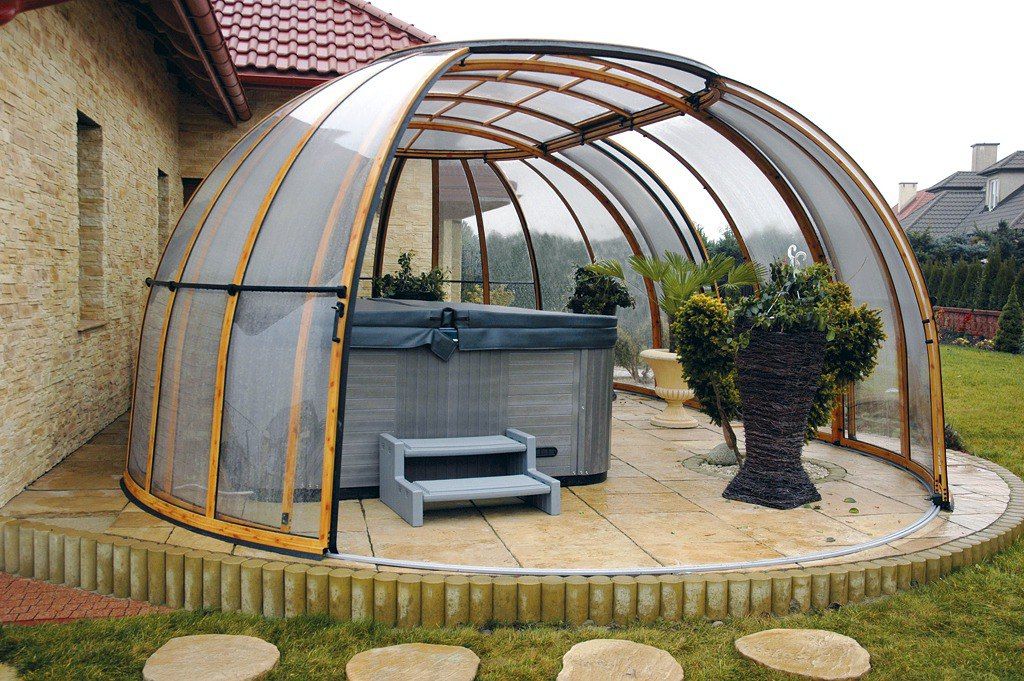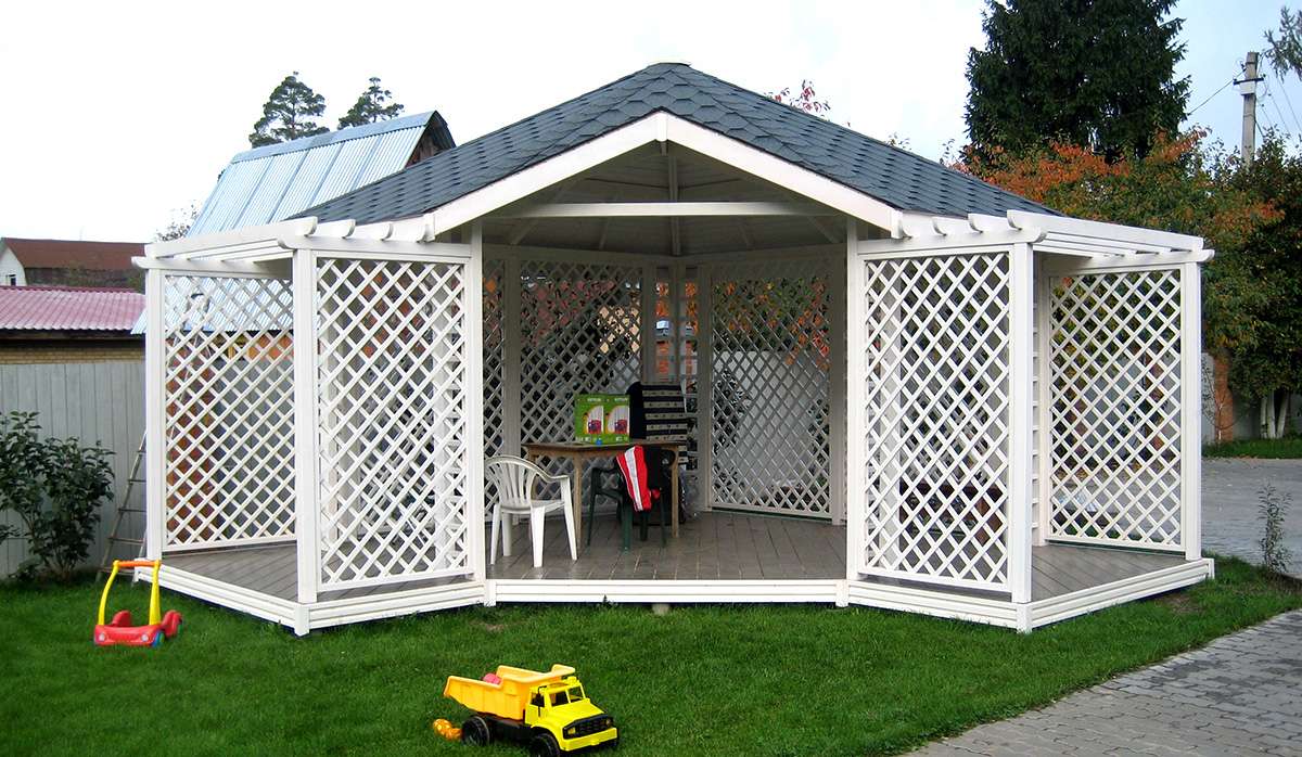 - مغلق. يبدو وكأنه منزل صغير ، لأنه يحتوي على جدران صلبة وسقف على القمة. يسمح لك بقضاء بعض الوقت بشكل مريح في فصل الشتاء ، لكن في الصيف قد يكون خانقًا بعض الشيء. تبدو بسيطة وجميلة بطريقتها الخاصة.