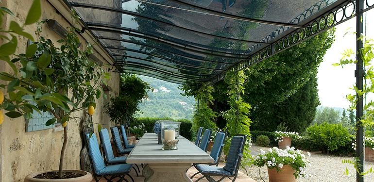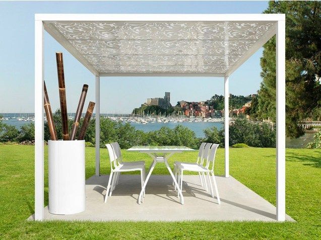 - زجاج. يجب ألا تصنع عريشة زجاجية بالكامل - ستكون النتيجة ، كما في الدفيئة ، في الصيف أنها لن تتخلى عن الملل. لكن إدخال عناصر زجاجية في العرش من مواد أخرى ، فإن تزيينها بزجاج ملون أو انصهار أو نقش الماس فكرة جيدة.