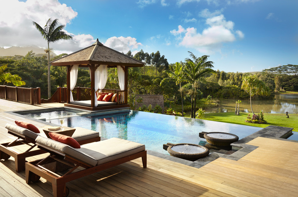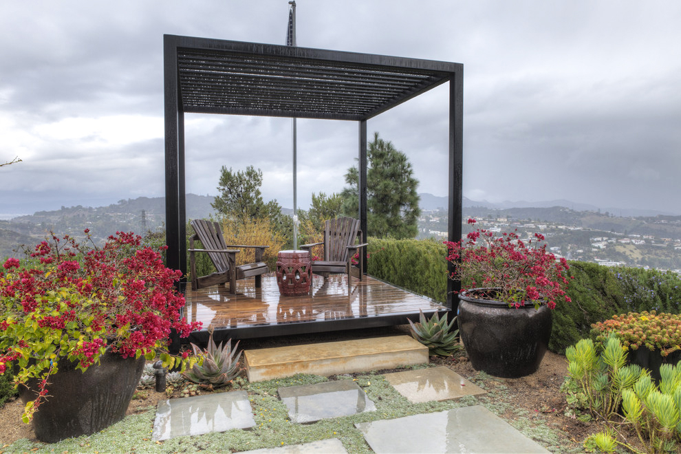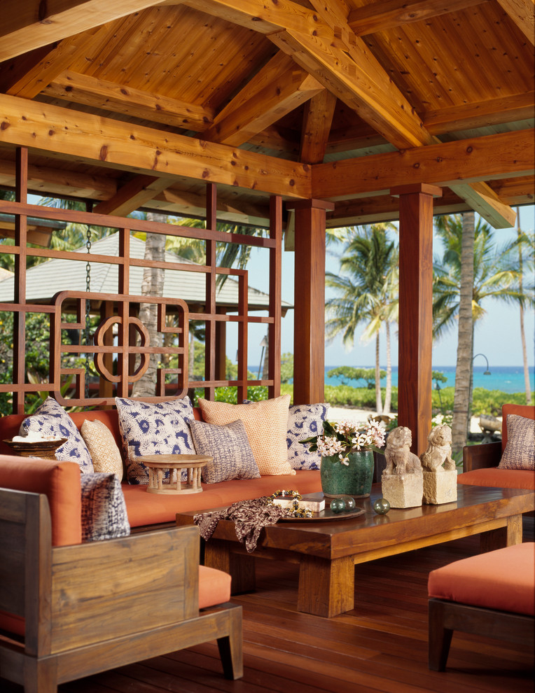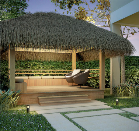 - خيزران. القش ، العشب والمواد الطبيعية المماثلة تستخدم لتغطية السقف. نتيجة لذلك ، فإن شرفة المراقبة تبدو وكأنها كوخ للفلاحين أو الحراجة ، والتي يمكن اعتبارها أيضًا قرارًا مثيرًا للاهتمام.