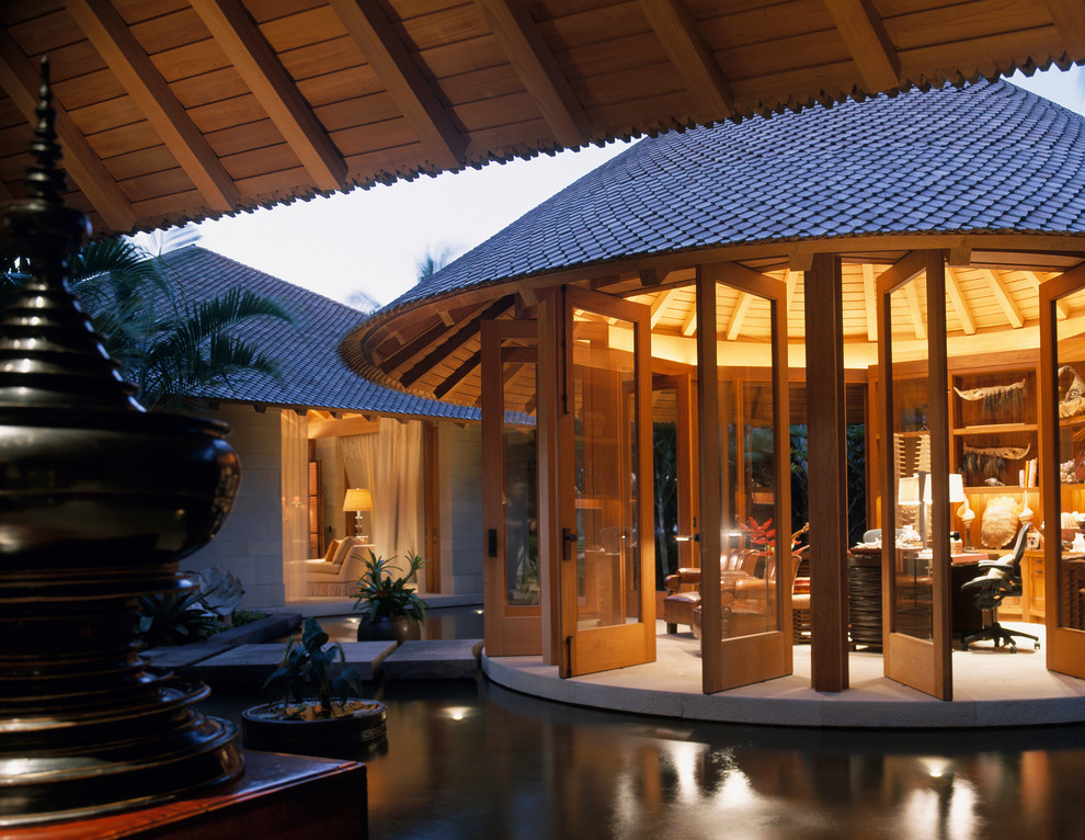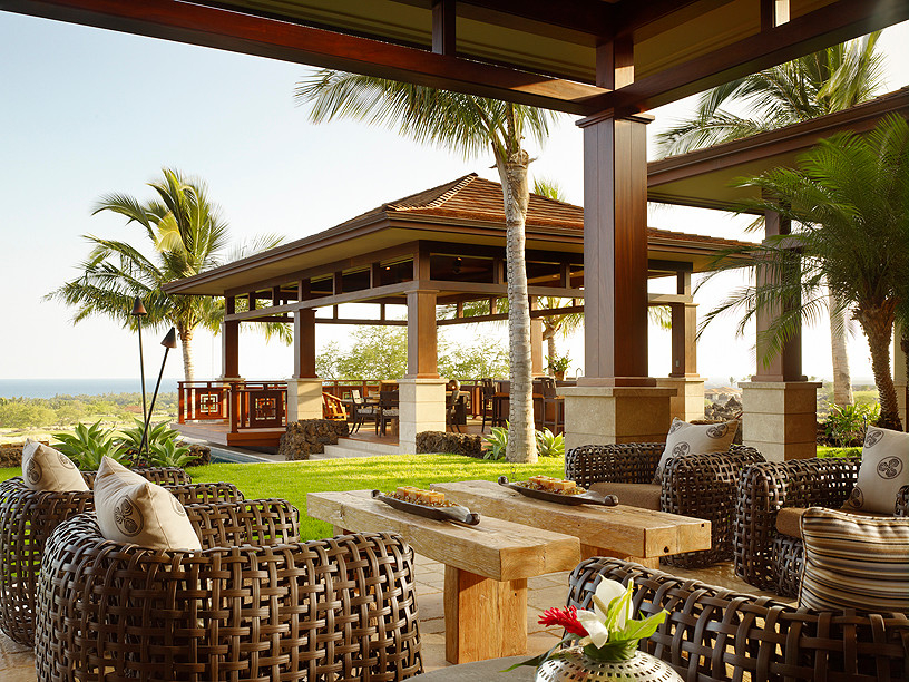 - أثاث. الكراسي الخوص ، الأرائك ، الكراسي. لا الأثاث المنجد. الملحقات - الفوانيس الورقية والتماثيل والزهور الطازجة.