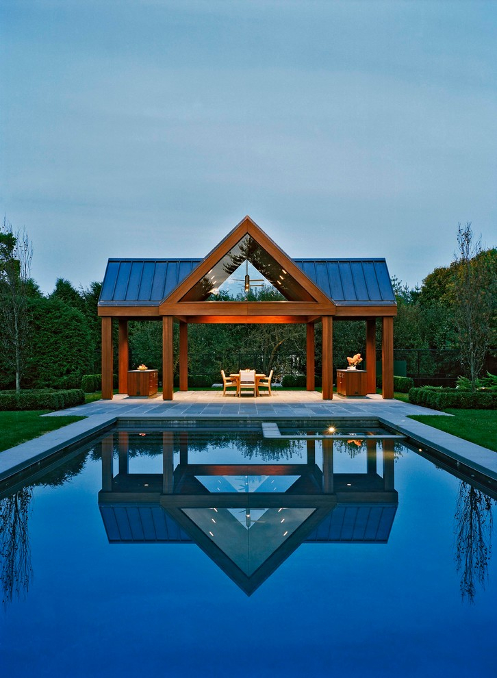 - الشكل الهندسي. مربع أو مستطيل. السقف مسطحة ، بدلا من الجدران أبسط الأعمدة.