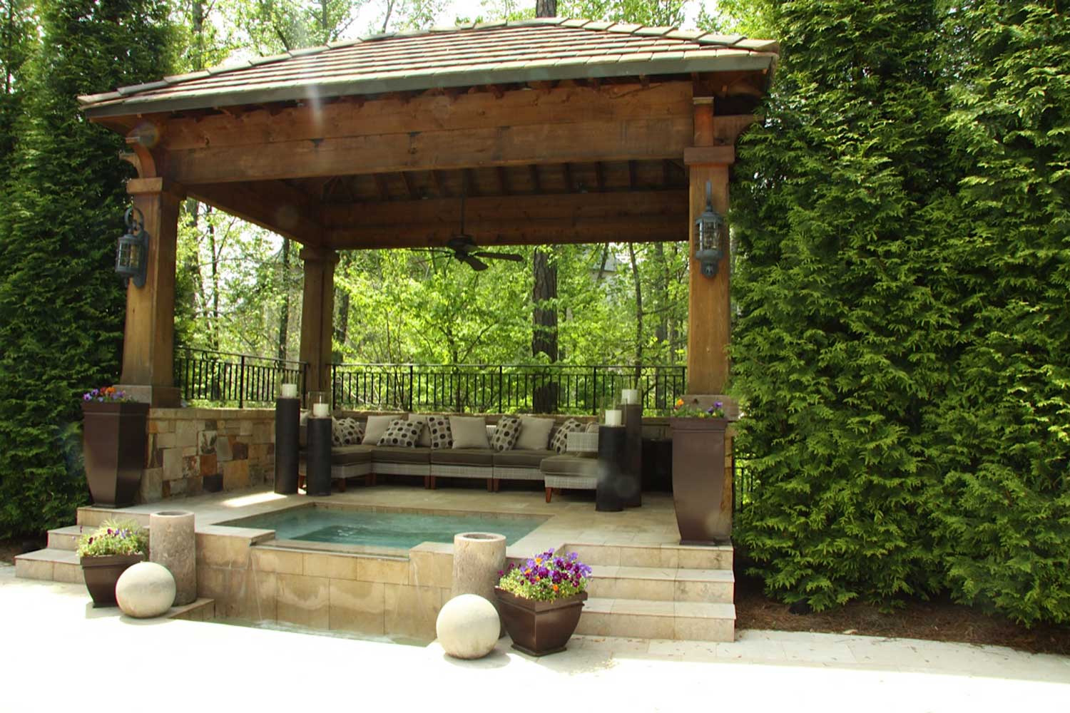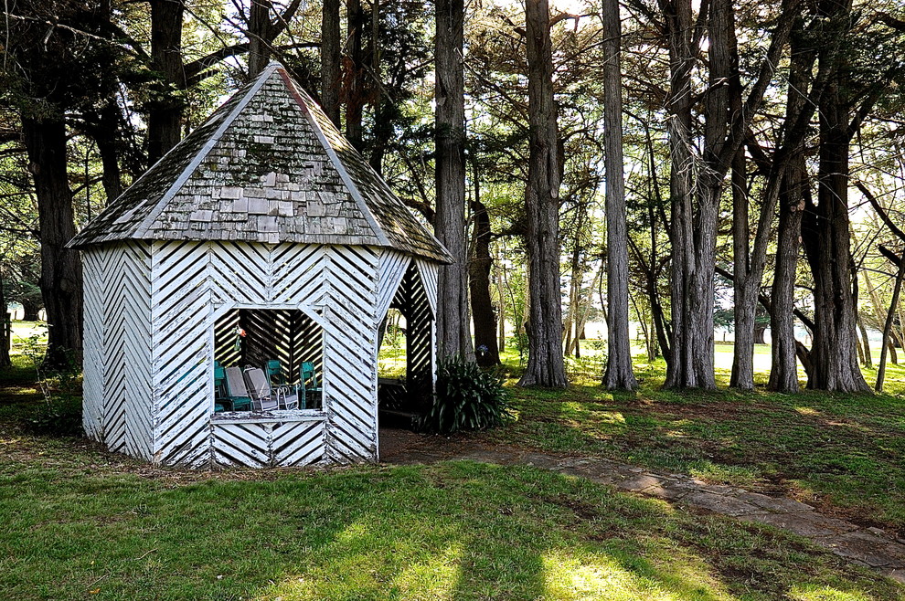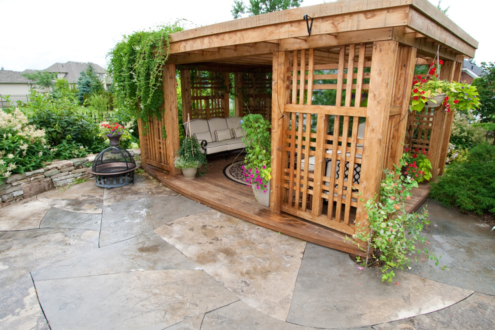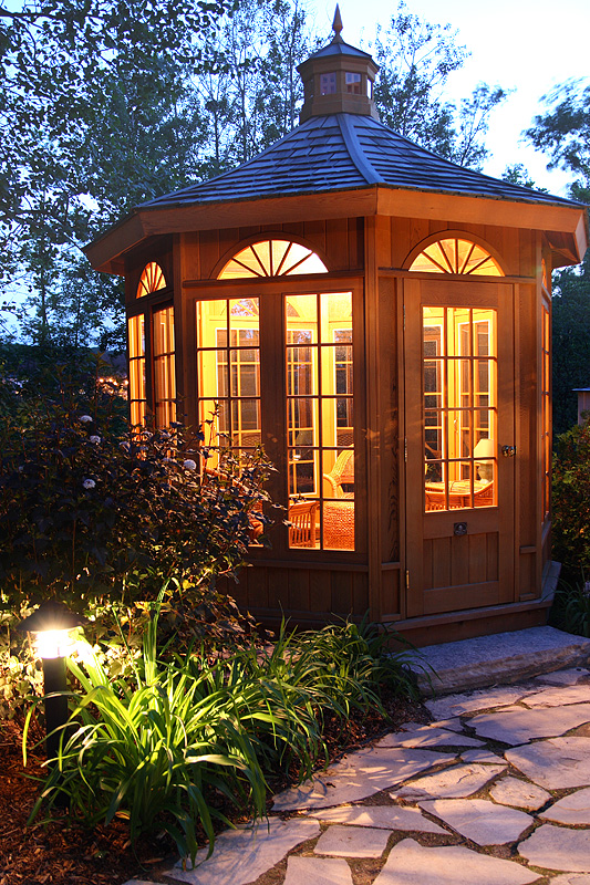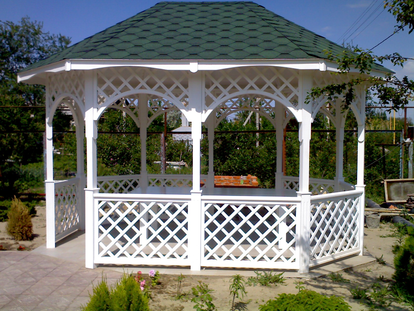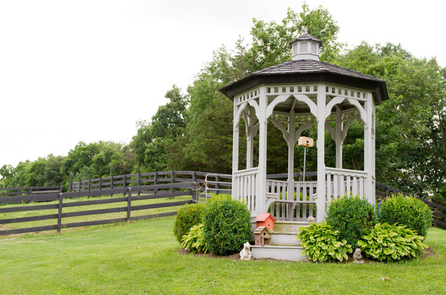 - جولة. هذه الأكشاك نادرة نسبيًا ، حيث يصعب صنعها. أنها تبدو ، ومع ذلك ، مذهلة ، والمثير للاهتمام ، وجذب الانتباه. تبدو جيدة بشكل خاص إذا كان السقف مصنوعًا على شكل نصف كرة.