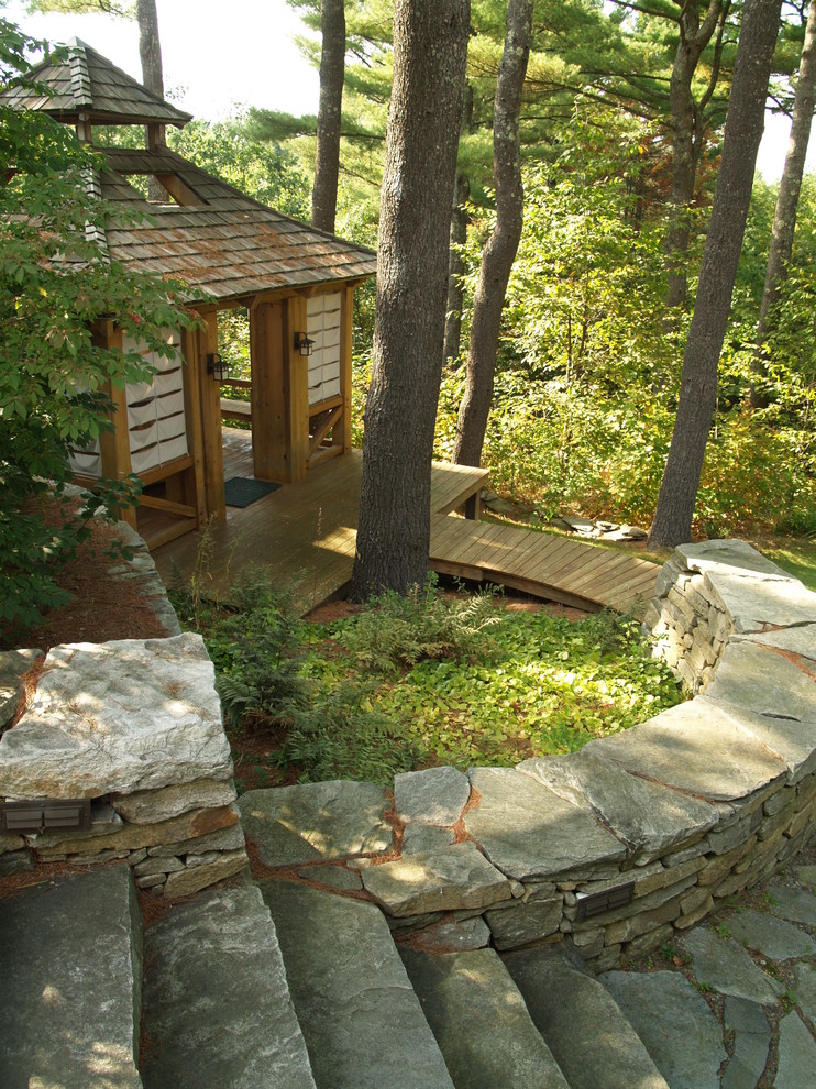 - المواد. طبيعي بشكل استثنائي. في اليابان نفسها ، المناخ أكثر اعتدالا من هنا ، ويستخدم الخيزران هناك للبناء ، والأرز هو قصب. لكن في روسيا ، لن تقف هذه المواد لفترة طويلة ، لأنها تستحق استخدام الخشب والحجر الخفيفين.