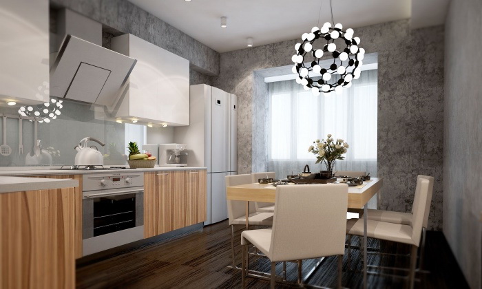 للمطبخ تحتاج إلى اختيار تلوين ورق الحائط. من الضروري مراعاة تلوين واجهات الأثاث وأسطح الطاولات ونوع الستائر على النوافذ وأسلوب الغرفة نفسها.