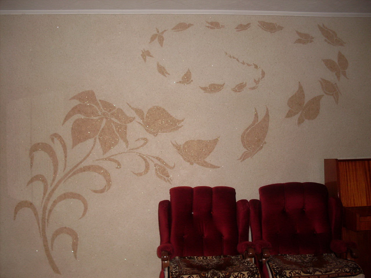 لتطبيق ورق حائط سائل على الحائط ، ليس من الضروري تحرير مساحة كبيرة - لا تحتاج إلى لف ورق للجدران على الأرض ، وقياس الحجم وتلبيس اللوحة بالغراء. كل شيء أبسط بكثير هنا.