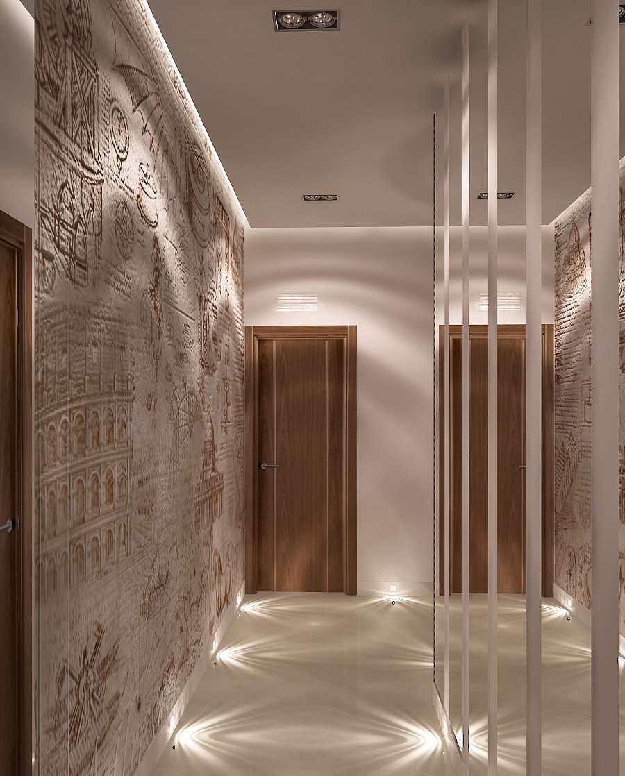 قد يبدو أن التغطية لن تكون أفضل خيار بالنسبة للممر أو الرواق. ولكن هذا ليس صحيحا تماما. عند وضعها فوق جدار ورنيش شفاف ، احصل على القوة اللازمة للطلاء.