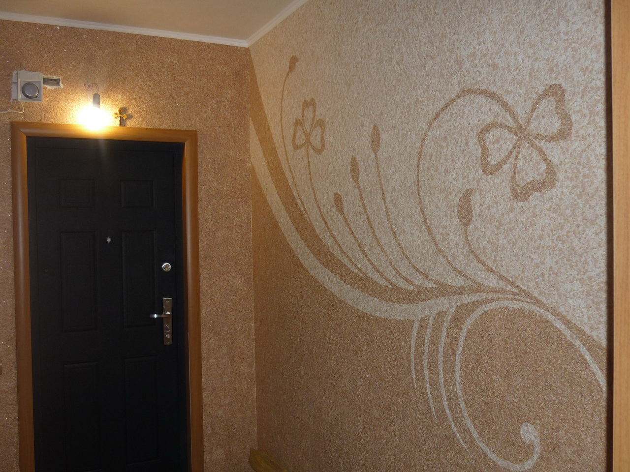 ورق جدران سائل في الداخل - هذه مادة شائعة لتزيين سطح الجدران.