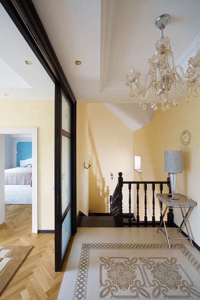 هل لديك مدخل صغير؟ ثم الانتباه إلى ظلال ضوء خلفية السائل. قد يبدو الظلام أكثر عملية ، ولكن لديهم خصوصية للتأثير على تصور الغرفة. سوف يبدو أصغر ، أغمق وأكثر راحة ، وهو أمر غير مرغوب فيه على الإطلاق.