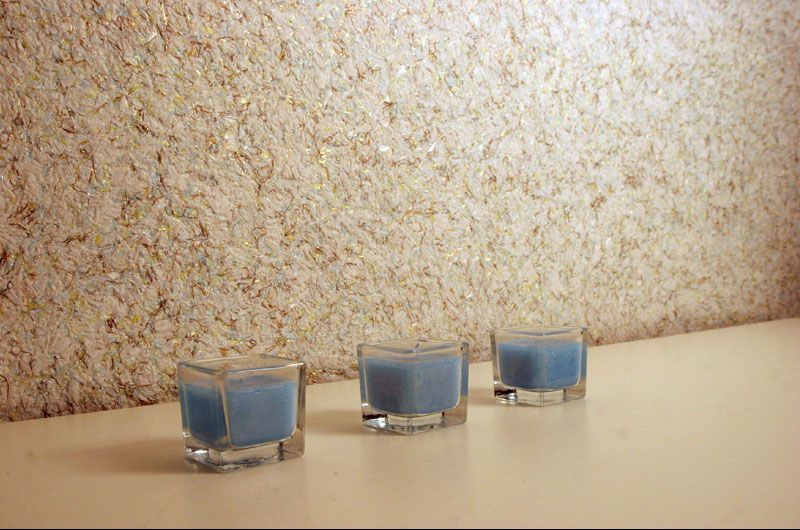 في تكوين بعض أنواع ورق الحائط السائل الحرير الطبيعي. تخلق بريقها النبيل انطباعًا عن المنسوجات على الجدران وتعطي شعوراً بالفخامة الملكية. بالإضافة إلى النهاية أحادية اللون ، تتيح خلفية السائل إمكانية إنشاء مناظر طبيعية كاملة ، على سبيل المثال ، مع غروب الشمس وتصفح البحر.