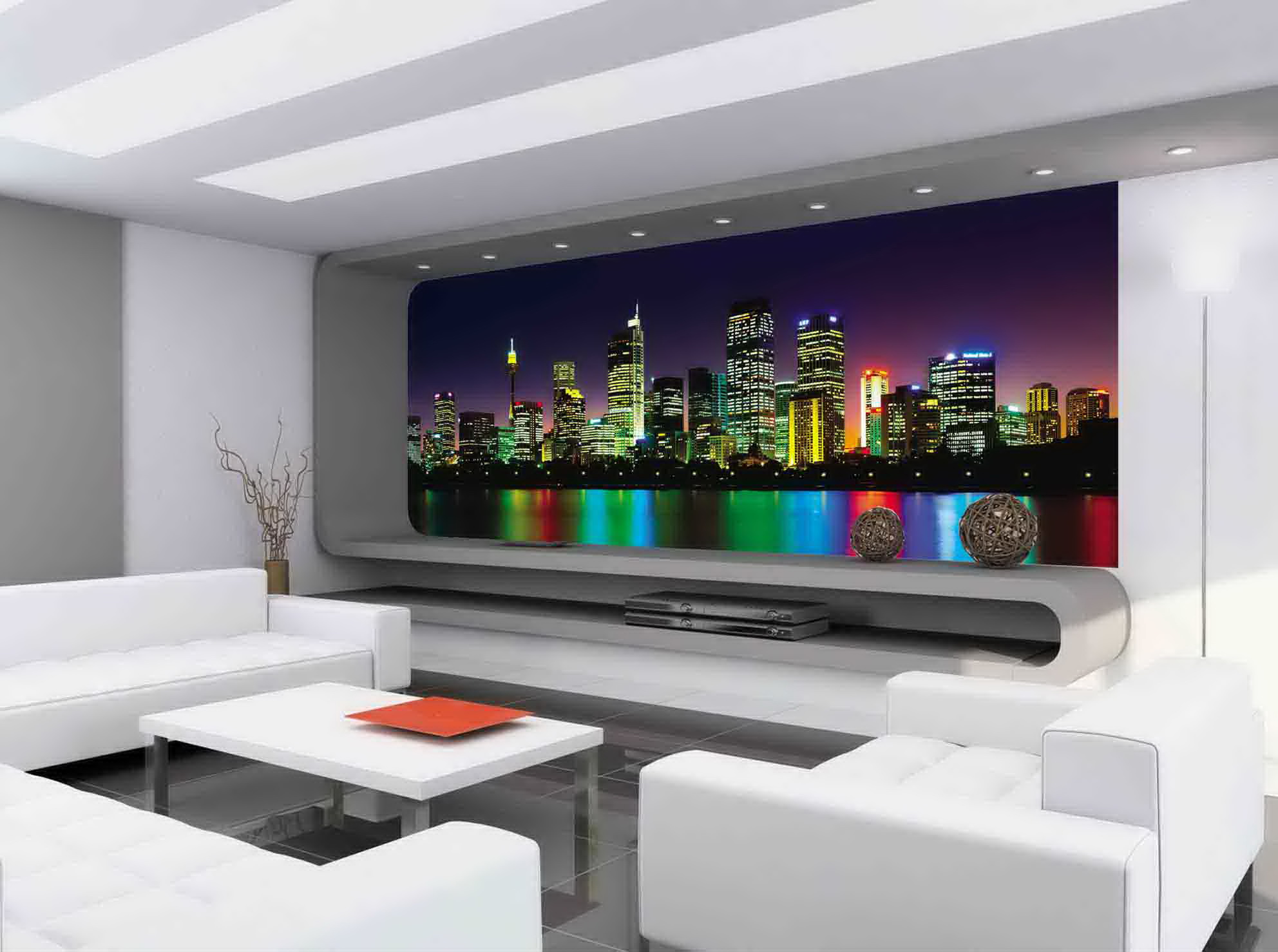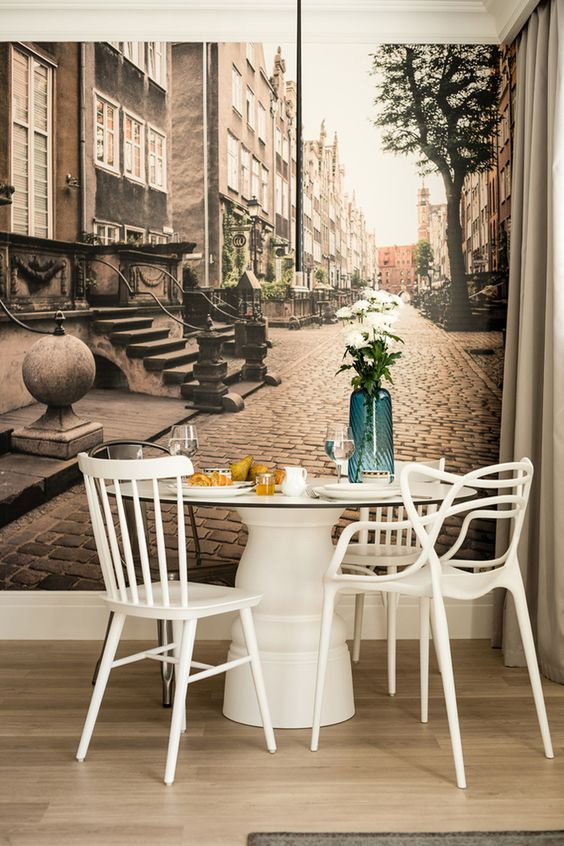 Cityscapes - η τρέχουσα τάση για τα δωμάτια. Αν ένας από τους τοίχους είναι πλήρως καλυμμένος με μια φωτογραφία, θα έχετε την εντύπωση ενός μεγάλου παραθύρου που θα κοιτάει κατευθείαν στην πόλη των ονείρων σας ή στις ζεστές ευχάριστες αναμνήσεις σας.