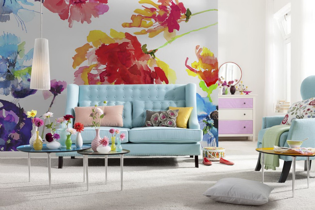 Εάν το ίδιο το δωμάτιο είναι φωτεινό, χρησιμοποιώντας πλούσια χρώματα στο έπιπλο και το σχέδιο, τότε ο συνηθισμένος τύπος ταπετσαρίας μπορεί απλά να χαθεί χωρίς να διακοσμήσει το δωμάτιο. Πώς να είμαι σε αυτή την περίπτωση;
