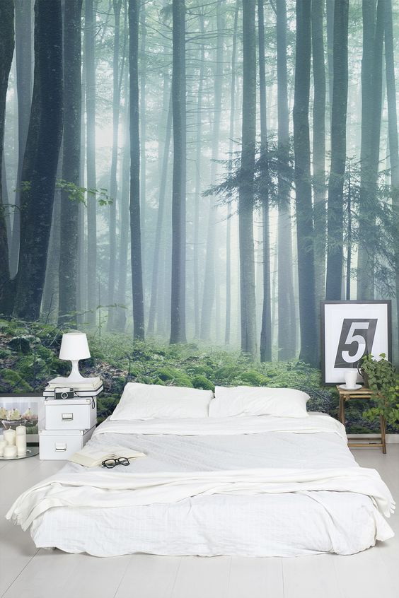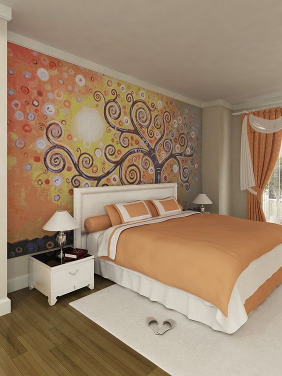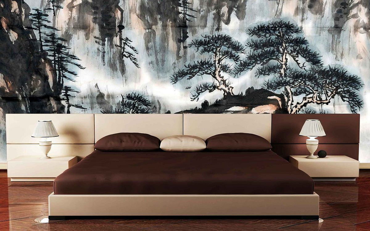Για την κρεβατοκάμαρα δεν είναι επιθυμητό να επιλέξετε περιττές δυναμικές σκηνές ή πολύ ζωντανές. Αυτές οι ταπετσαρίες είναι πιο κατάλληλες για το σαλόνι. Στο υπνοδωμάτιο είναι προτιμότερο να επιλέξετε μια ήσυχη εκτύπωση χωρίς αντιθέσεις και ακάθαρτα χρώματα.