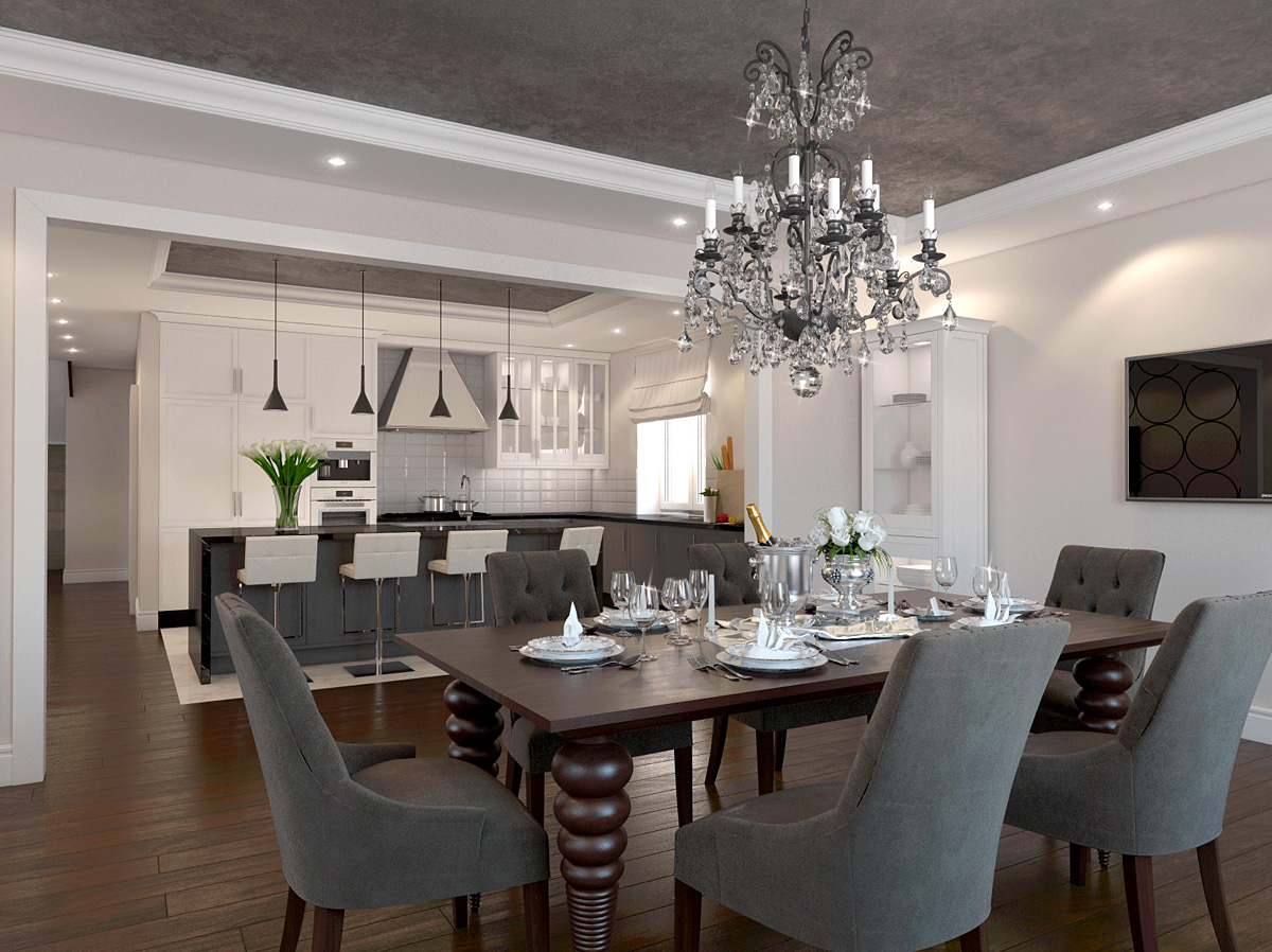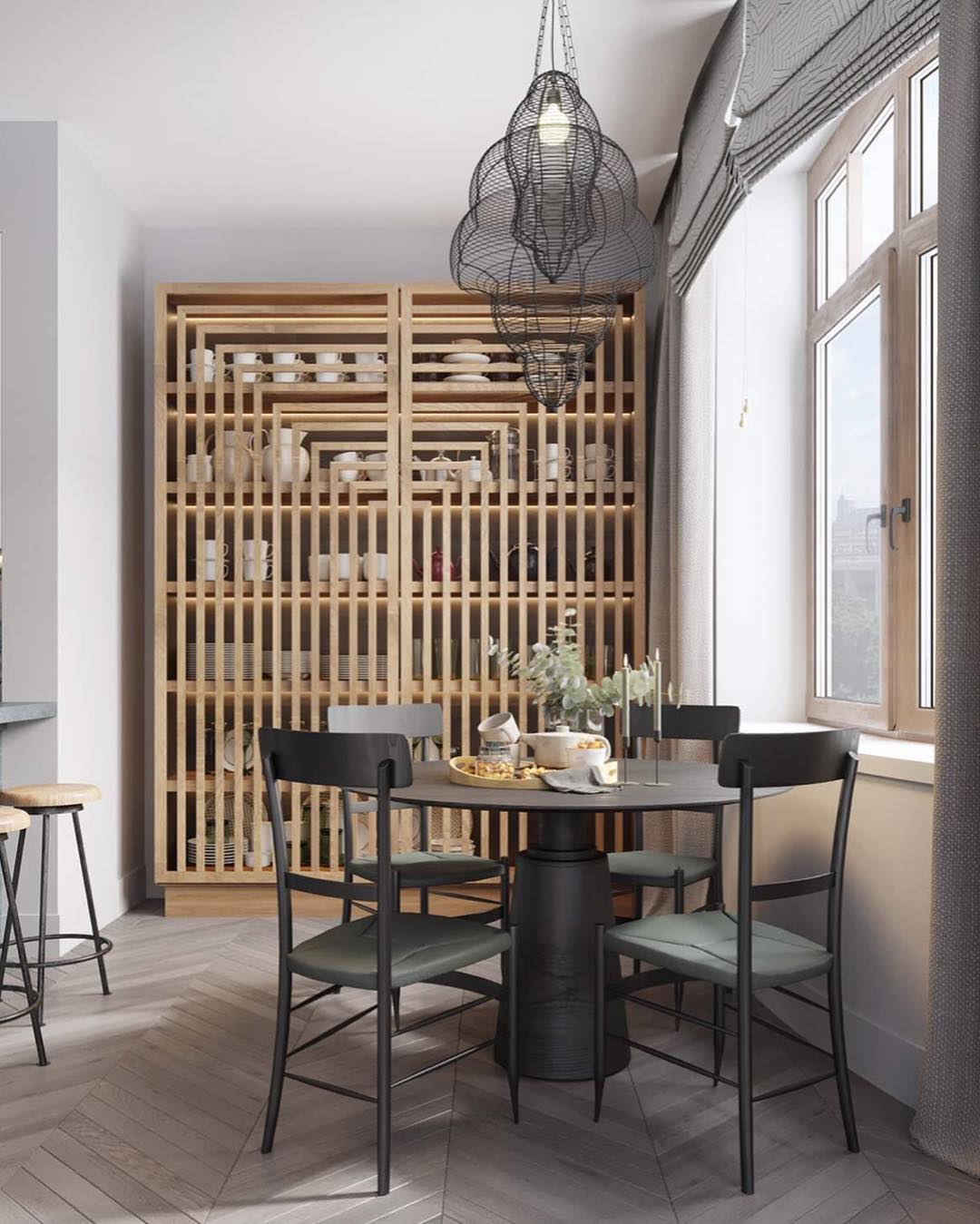 Ο σημαντικότερος παράγοντας για τον προσδιορισμό ενός χώρου για μια τραπεζαρία είναι ο χώρος που θα καταλάβει. Εάν υπάρχουν μόνο τρία άτομα στην οικογένεια, μπορείτε να κάνετε με ένα μικρό τραπέζι ή απλά ένα περίπτερο. Για μια άνετη διαμονή μιας μεγάλης οικογένειας χρειάζεστε ένα συνολικό τραπέζι, συν ένα χώρο για άνετη τοποθέτηση.