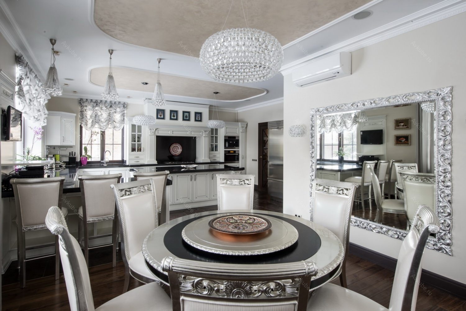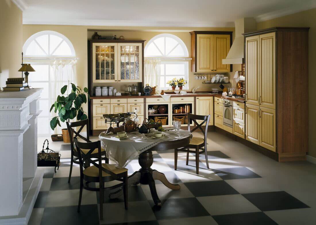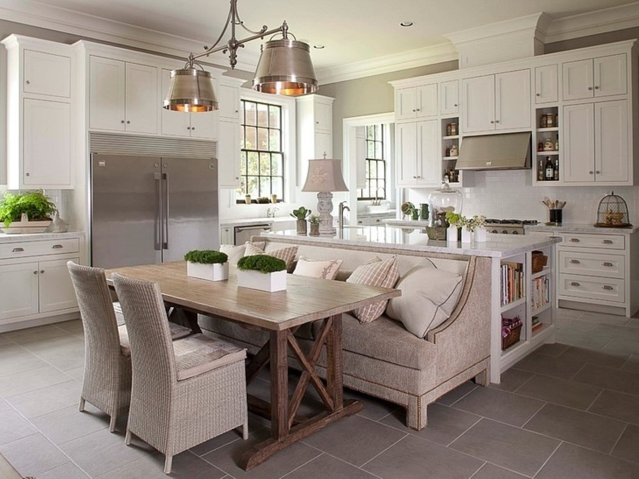 Αν είστε ιδιοκτήτης μιας ευρύχωρης τετραγωνικής κουζίνας, υπάρχουν πολλές επιλογές. Η τραπεζαρία μπορεί άνετα να παραμείνει στο κέντρο με τη μορφή ενός "νησιού", να επιλέξετε οποιαδήποτε γωνία ή τοίχο. Αν το δωμάτιο έχει ορθογώνιο σχήμα, εξαρτάται από το πλάτος. Όταν το πλάτος επιτρέπει, μπορείτε να κανονίσετε μια τραπεζαρία κοντά σε έναν από τους μακρινούς τοίχους. Το σύνολο που βρίσκεται ταυτόχρονα στο αντίθετο τοίχωμα ή γωνία.