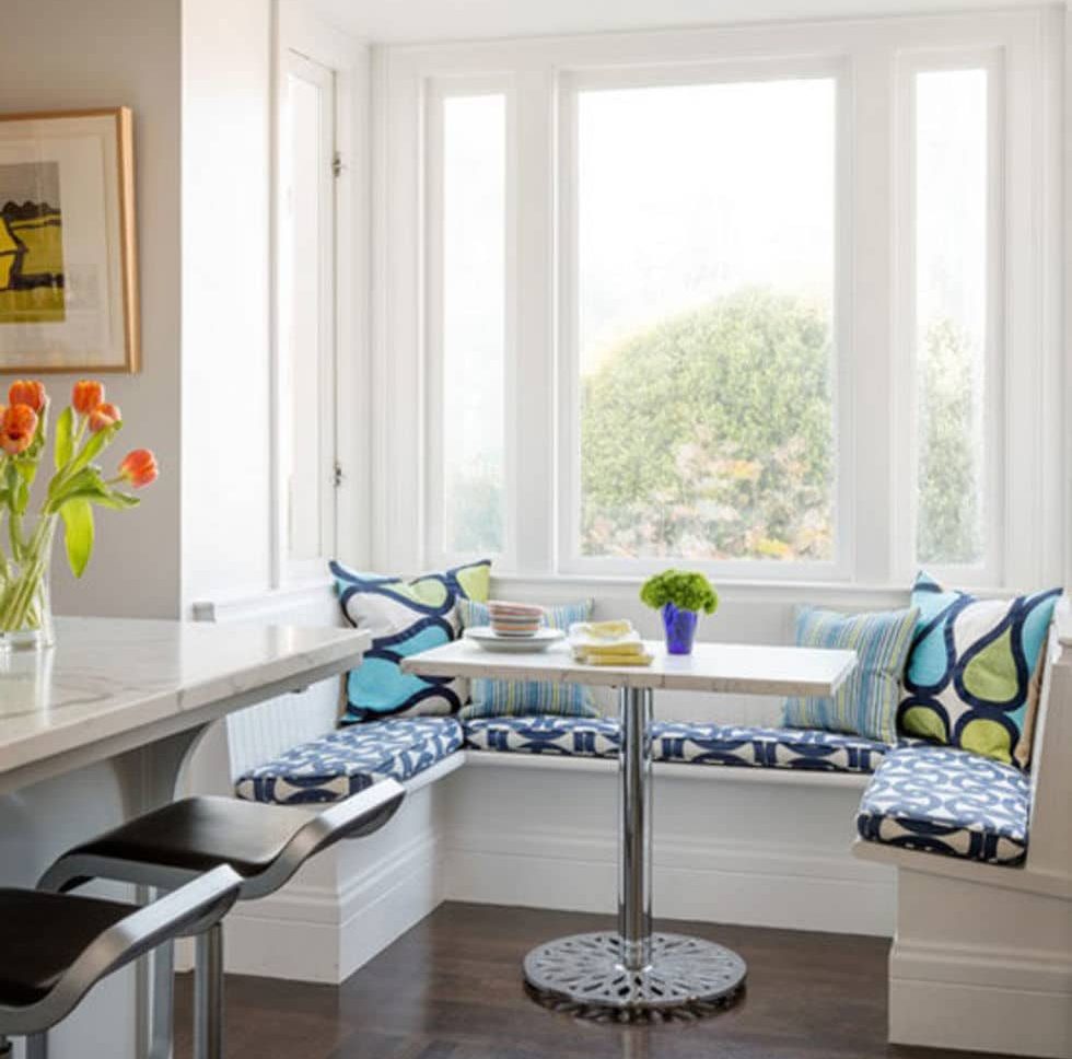 - Παράθυρο. Η τραπεζαρία του τραπεζιού μπορεί να ενσωματωθεί απευθείας κάτω από το παράθυρο, καλύπτοντας πλήρως το περβάζι παραθύρου. Το πλάτος εξαρτάται από τον ελεύθερο χώρο. Εάν είναι δυνατόν, πρέπει να φέρετε το τραπέζι στον πλευρικό τοίχο. Αντί για κλασικές καρέκλες, είναι προτιμότερο να επιλέξετε ψηλά σκαμνιά. Όταν είναι άχρηστοι, κρύβονται κάτω από το τραπέζι. Μπορείτε επίσης να συνδυάσετε ένα στενό τραπέζι κάτω από το παράθυρο με δύο μίνι καναπέδες στα πλάγια.