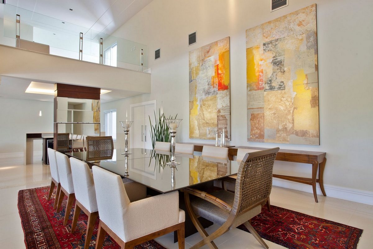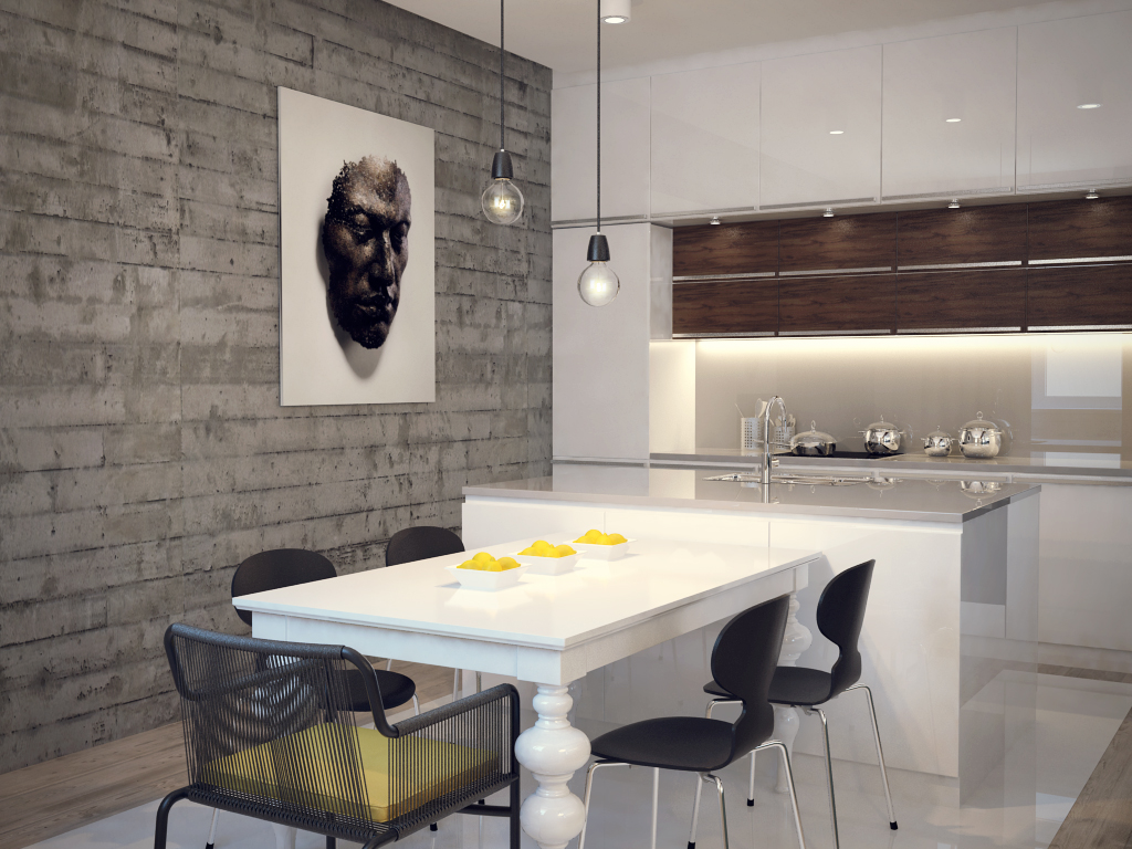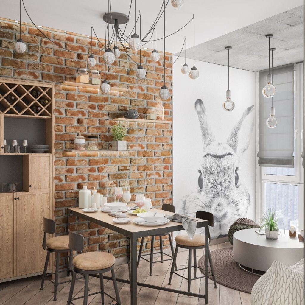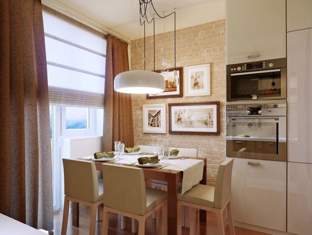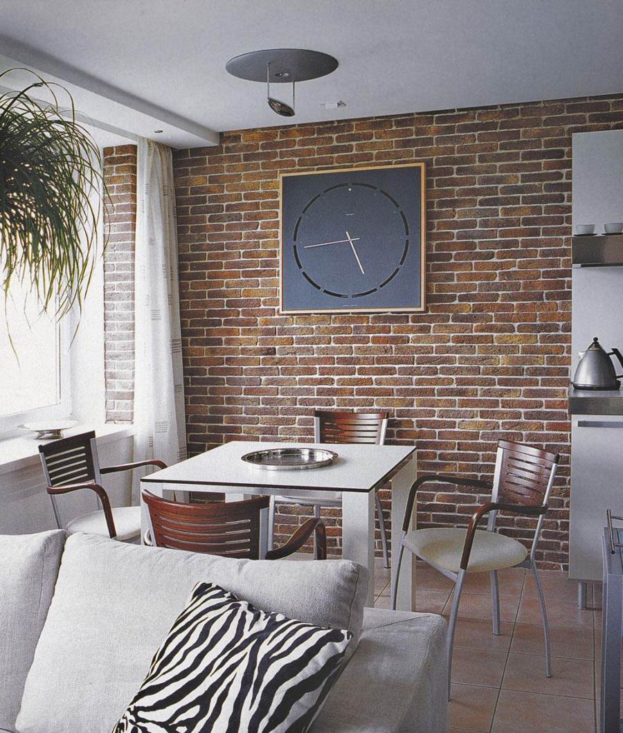 Διακοσμητική επένδυση από τούβλα - Η πλέον σύγχρονη τάση στον μοντέρνο σχεδιασμό. Η τραπεζαρία διακοσμημένη με λευκό ή κόκκινο τούβλο φαίνεται πολύ κομψή. Είναι σημαντικό αυτό το ένθετο να είναι αρμονικό με το γενικό κίνητρο του εσωτερικού.