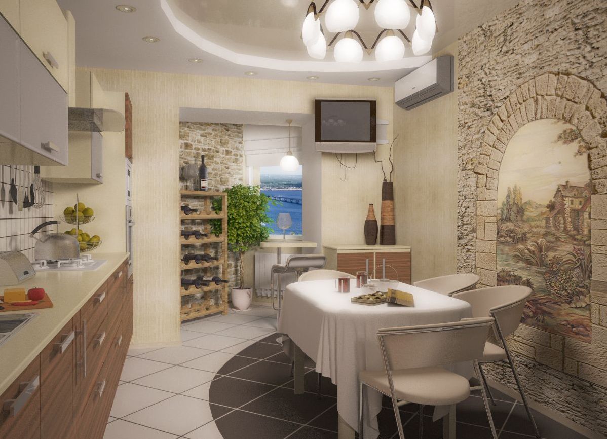 Είναι γνωστό ότι η κουζίνα χωρίζεται υπό όρους σε δύο λειτουργικές περιοχές: την εργασία και την τραπεζαρία. Αρχικά, καθορίζουμε τη μελλοντική τοποθέτηση αυτών των ζωνών.