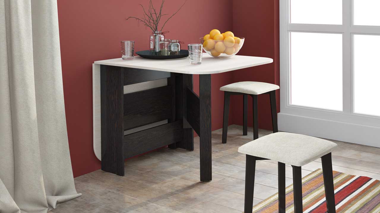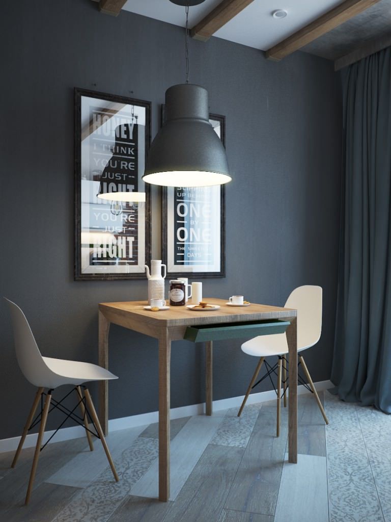- Πτυσσόμενο τραπέζι. Αυτό το σχέδιο γίνεται στην τάξη. Συνδέεται σε οποιαδήποτε ελεύθερη περιοχή του τοίχου. Υπάρχουν επίσης γωνιακοί πίνακες δίπλωσης. Μοιάζει με τραπέζι μπαρ μετρητήη οποία κατά τη διάρκεια του ελεύθερου χρόνου από την πρόσληψη τροφής αναπτύσσεται εύκολα σε έναν τοίχο. Για τοποθέτηση καθισμάτων ή πτυσσόμενες καρέκλες.