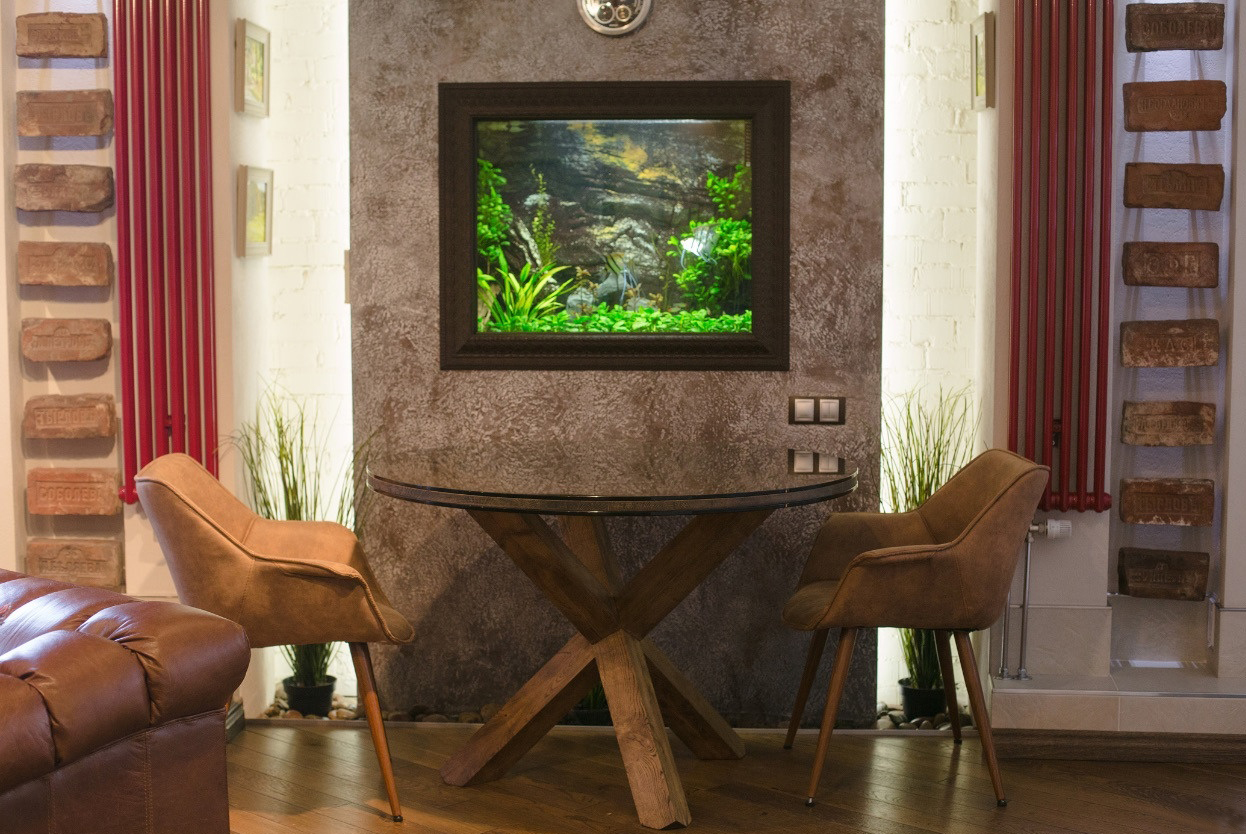 Γυάλινο ασβεστοκονίαμα σας επιτρέπει να δώσετε στους τοίχους μια ασυνήθιστη υφή. Μπορείτε να επιλέξετε υφές που μοιάζουν με πέτρα, ξύλο και ακόμη και δέρμα. Επιλέξτε την επιθυμητή περιοχή μπορεί να είναι διαφορετικό χρώμα ή ένθετο τούβλων.