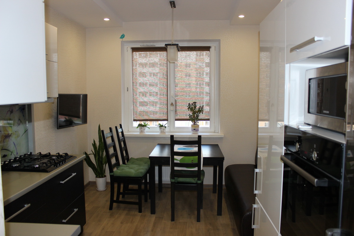 Σας προσφέρουμε επιλογές για τη θέση της τραπεζαρίας σε μια μικρή κουζίνα. Η επιλογή της σωστής μεθόδου είναι δική σας.