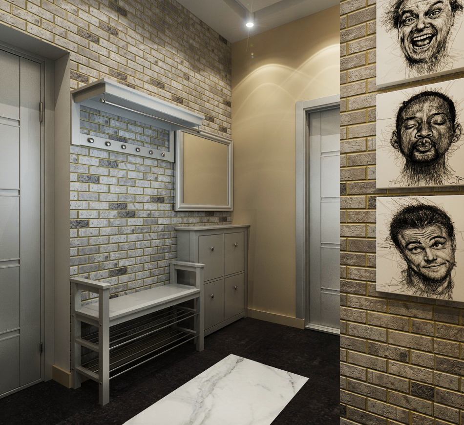 Οι λειτουργίες της ντουλάπας στους διάδρομους μικρού μεγέθους μπορούν να αντικαταστήσουν τις ενότητες επίπλων. Η κρεμάστρα τοίχου εξοικονομεί χώρο.