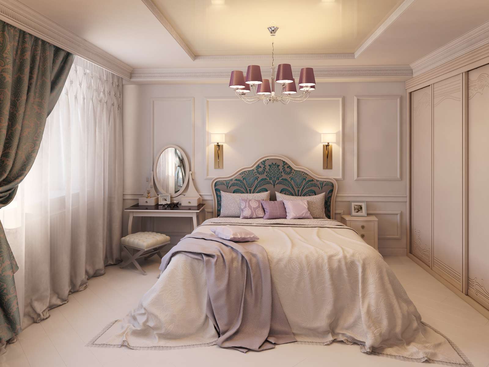 επιστρέψτε στο μενού ↑Όμορφο υπνοδωμάτιο σε κλασικό στιλ.