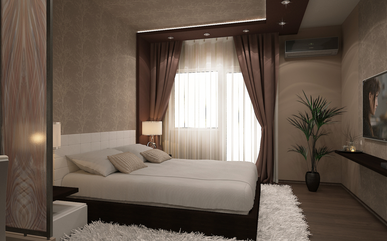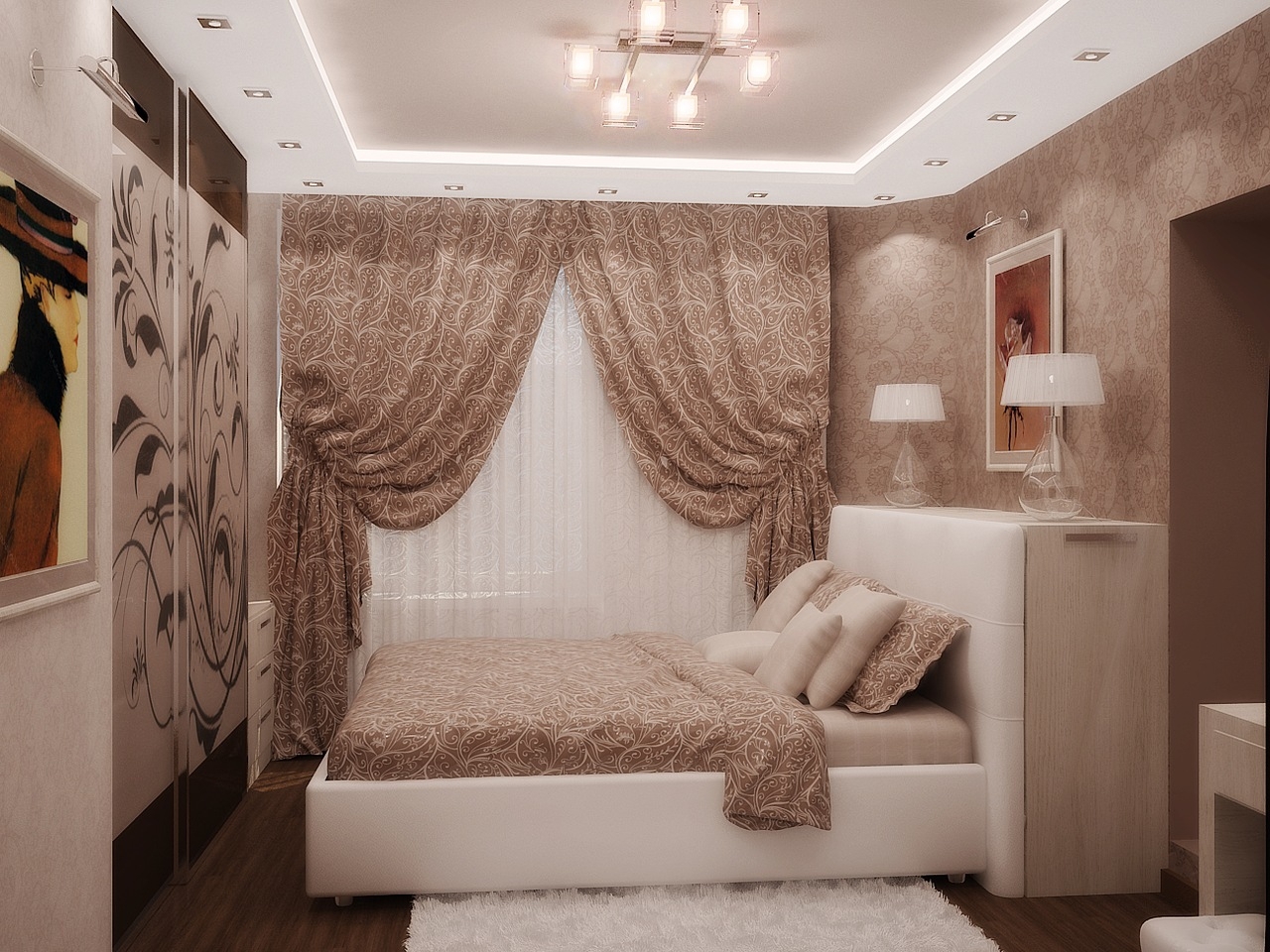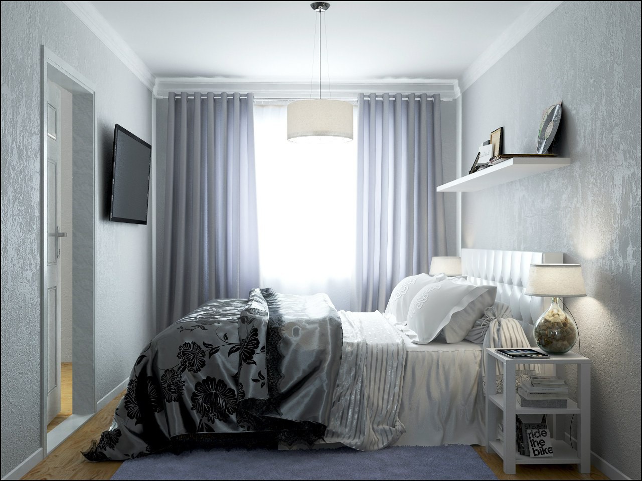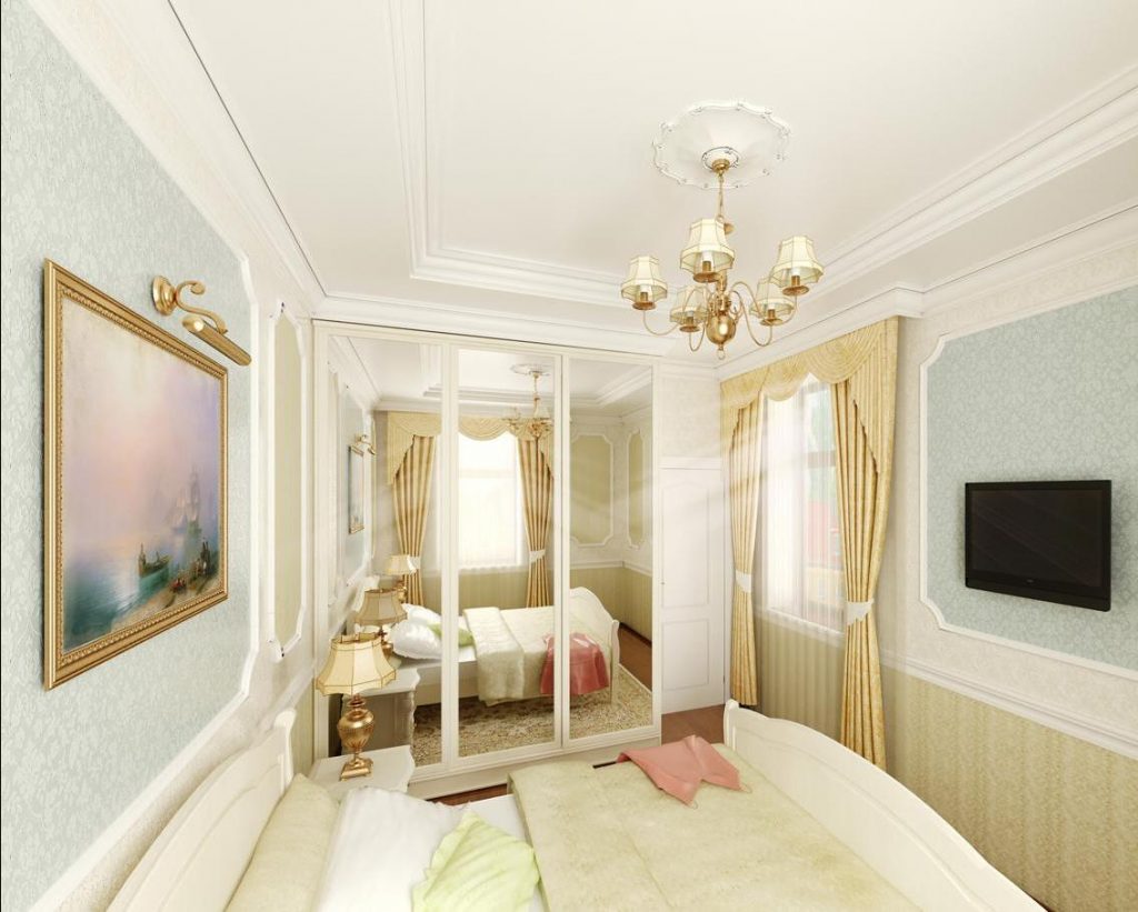 Κάθε υπνοδωμάτιο μπορεί να είναι ένας πραγματικός χώρος ξεκούρασης και χαλάρωσης, ανεξάρτητα από το αρχικό μέγεθος. Τα ανοιχτά χρώματα χρησιμοποιούνται για τη δημιουργία ενός οπτικά ενισχυμένου χώρου στο σχέδιο. Οι επιφάνειες καθρέφτη σε μακρινούς τοίχους κρύβουν οπτικά την επιμήκυνση του δωματίου. Οι οριζόντιες λωρίδες των ανοιχτών χρωμάτων διευρύνουν τον στενό χώρο.