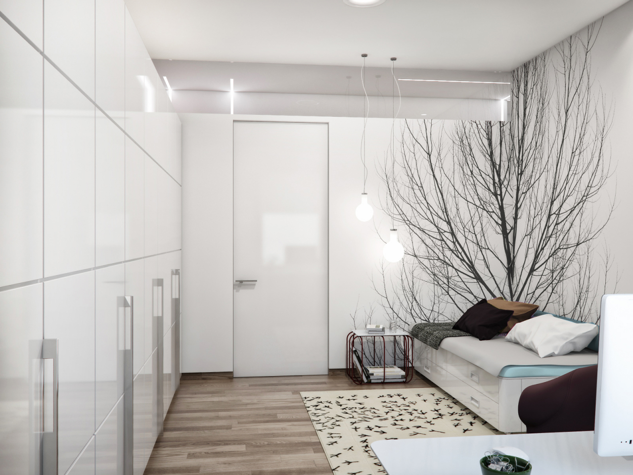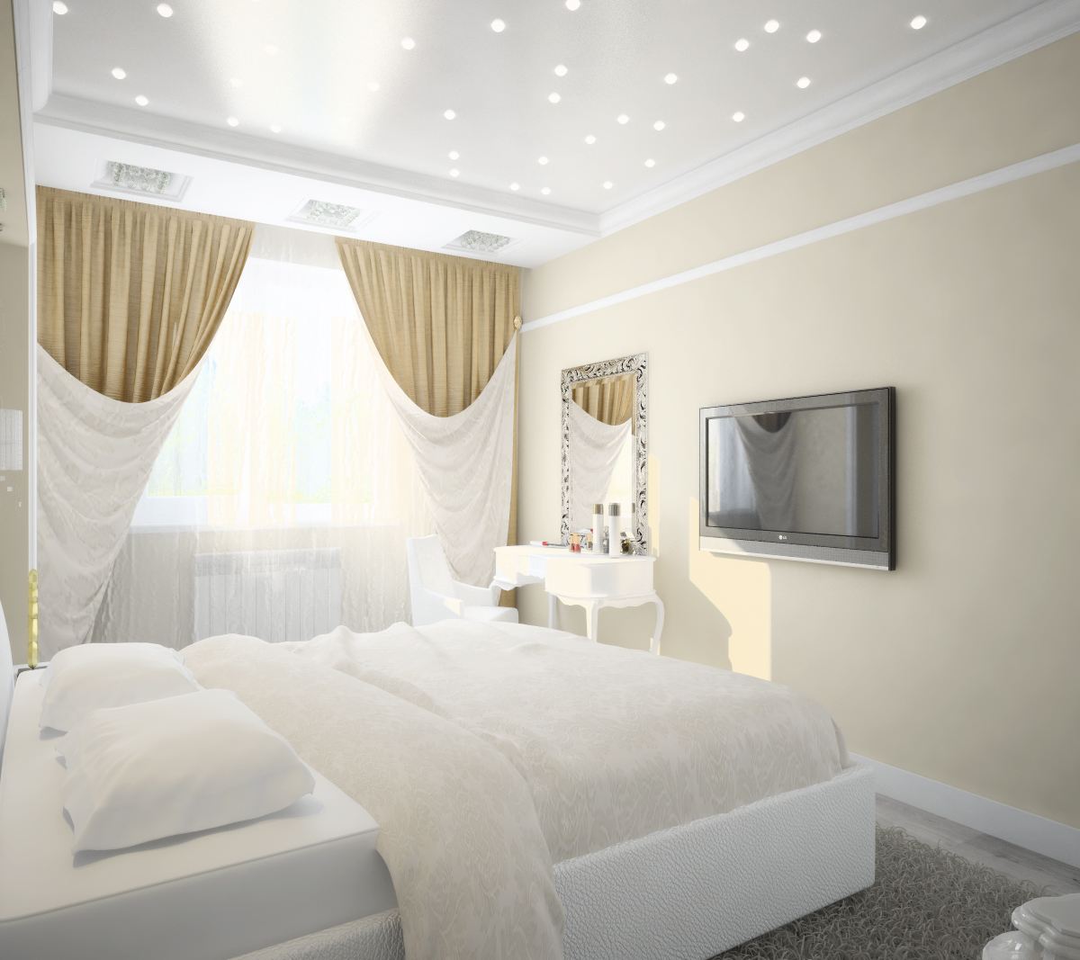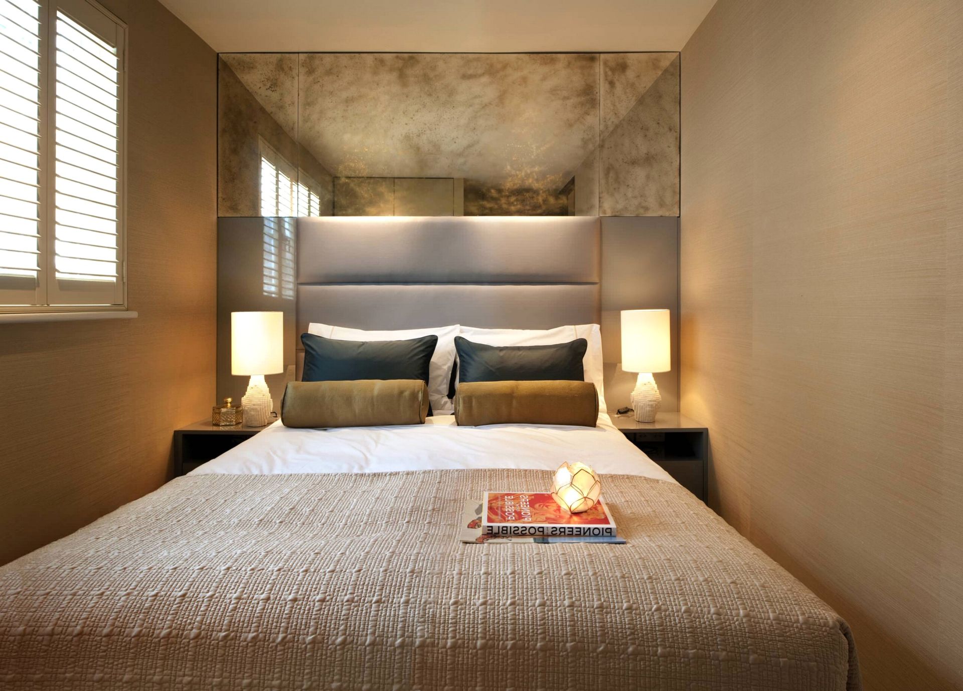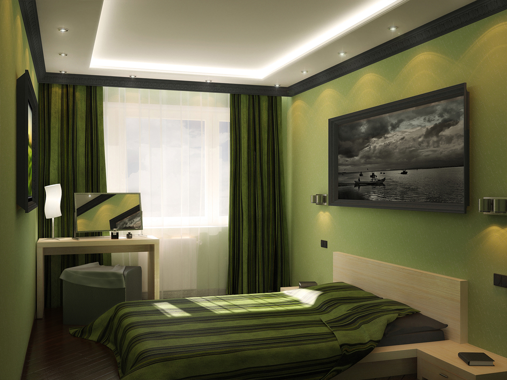 Κάθε υπνοδωμάτιο μπορεί να είναι ένας πραγματικός χώρος ξεκούρασης και χαλάρωσης, ανεξάρτητα από το αρχικό μέγεθος. Τα ανοιχτά χρώματα χρησιμοποιούνται για τη δημιουργία ενός οπτικά ενισχυμένου χώρου στο σχέδιο. Οι επιφάνειες καθρέφτη σε μακρινούς τοίχους κρύβουν οπτικά την επιμήκυνση του δωματίου. Οι οριζόντιες λωρίδες των ανοιχτών χρωμάτων διευρύνουν τον στενό χώρο.