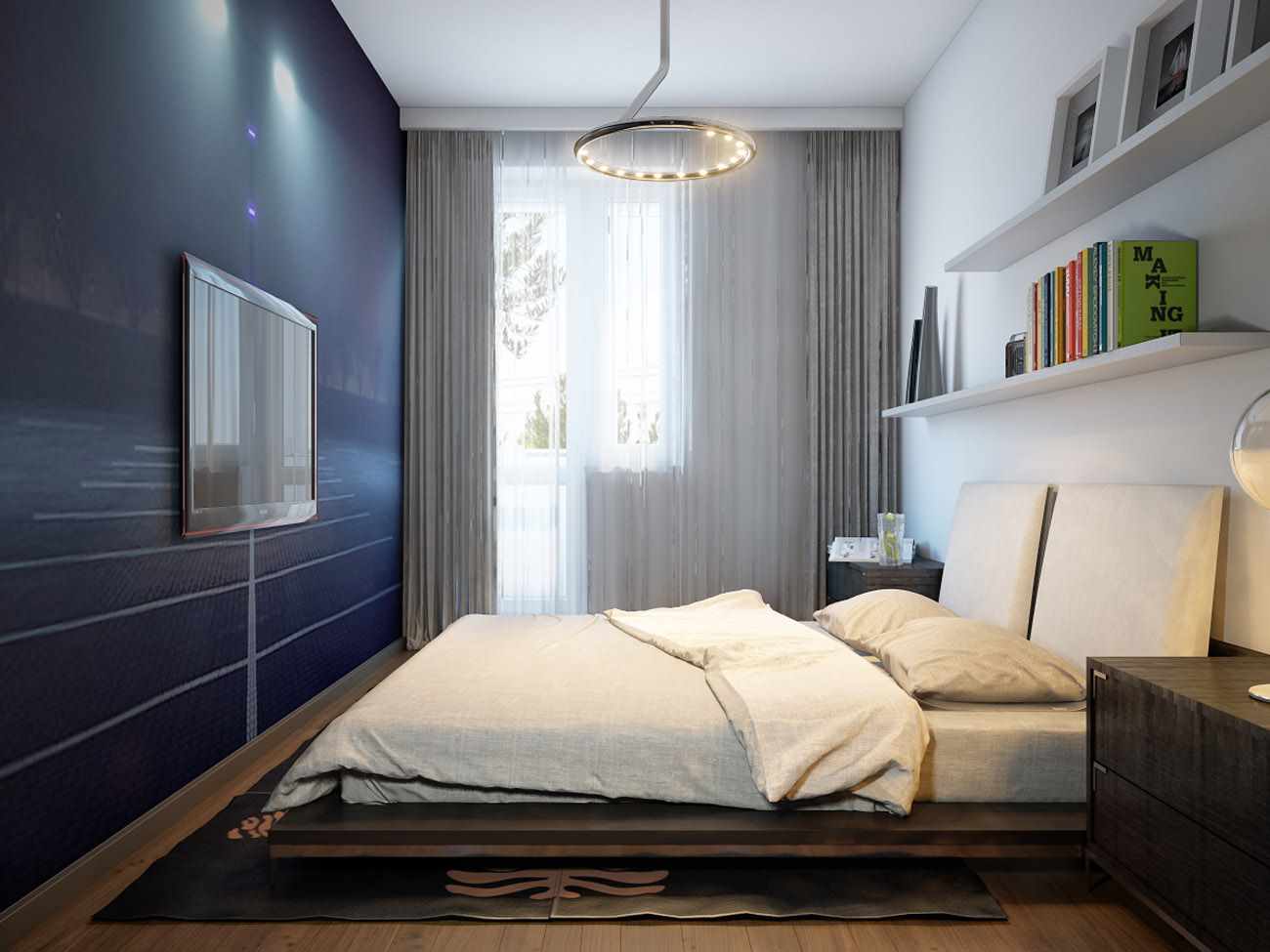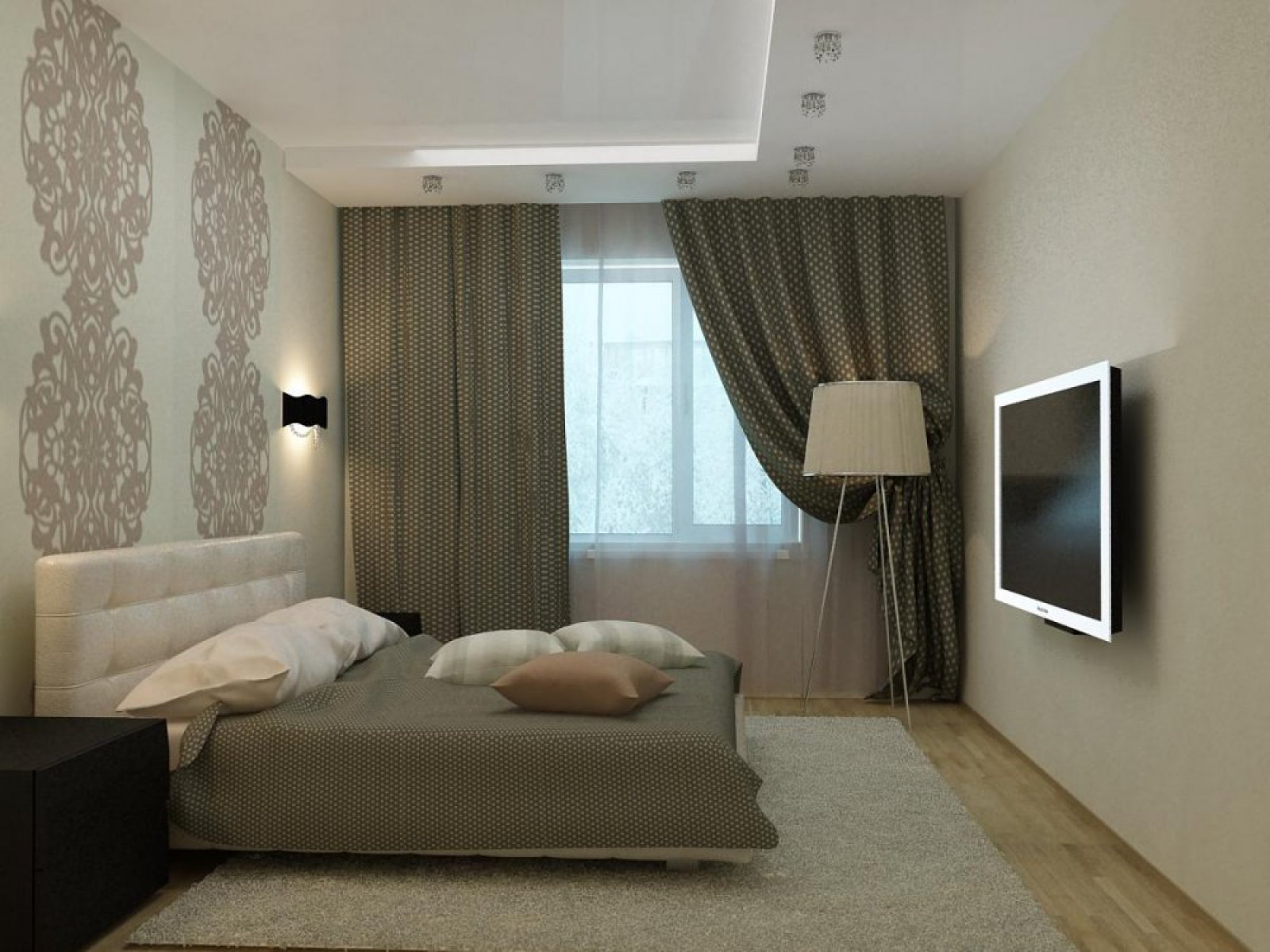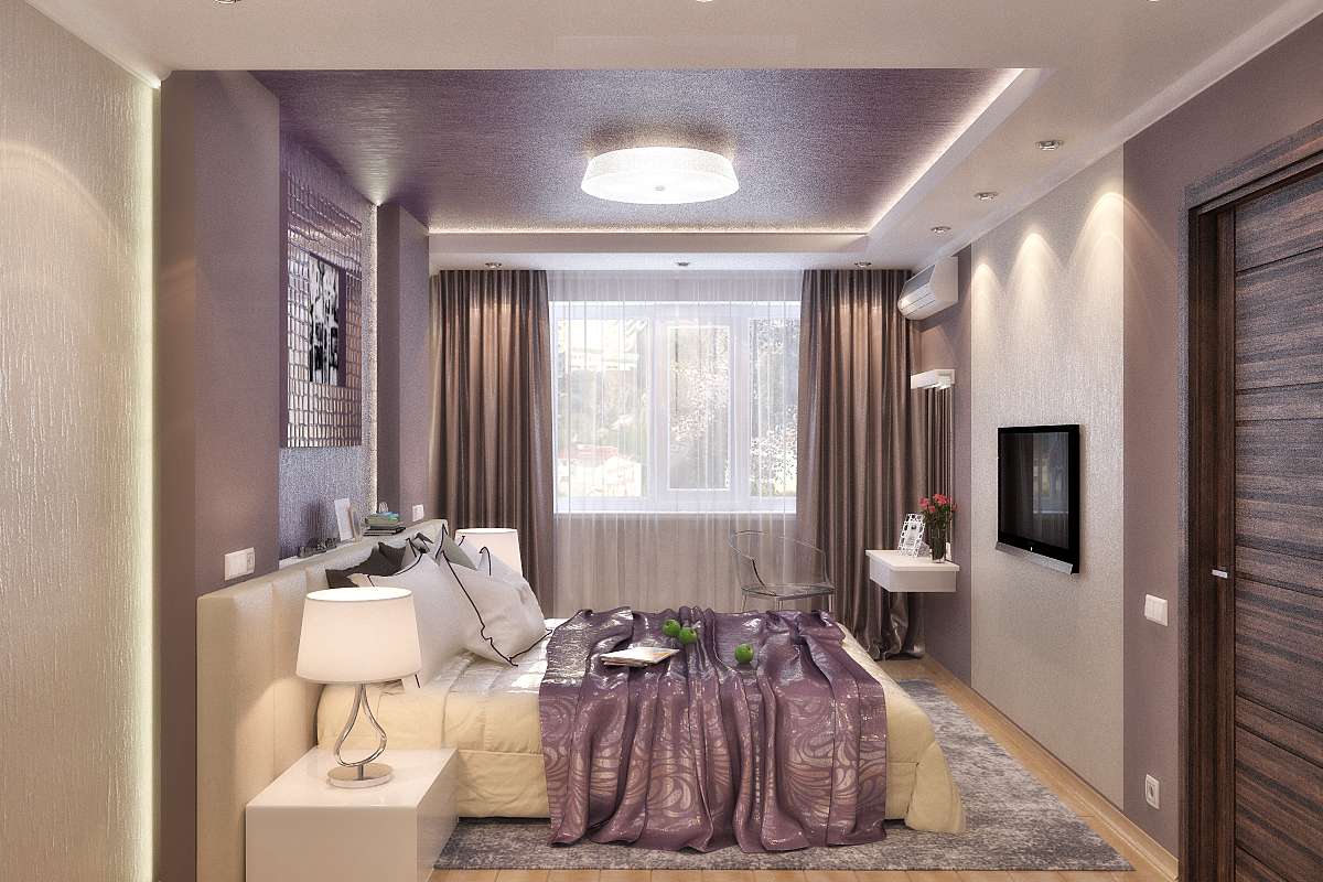 Κατά την κατασκευή μιας ορθογώνιας κρεβατοκάμαρας θα πρέπει να λάβετε υπόψη σας τις ελλείψεις αυτού του δωματίου: το μήκος σε συνδυασμό με ένα μικρό πλάτος, υψηλό οροφές.