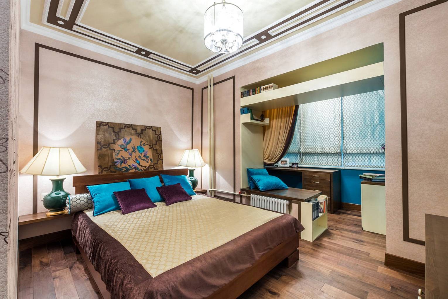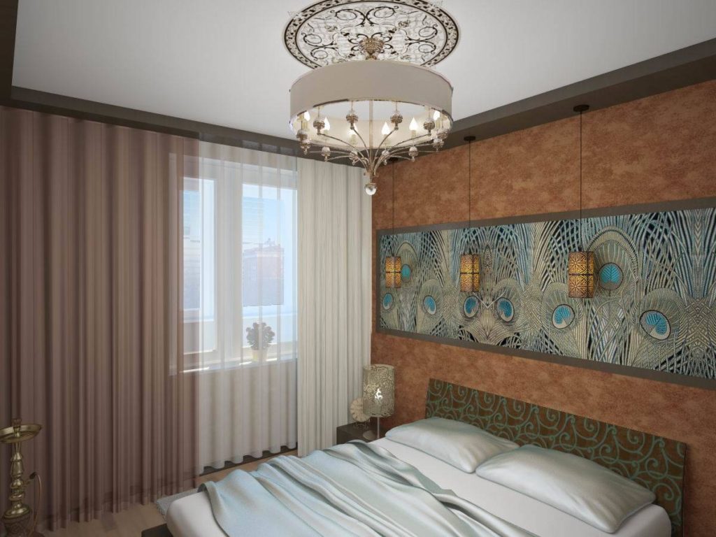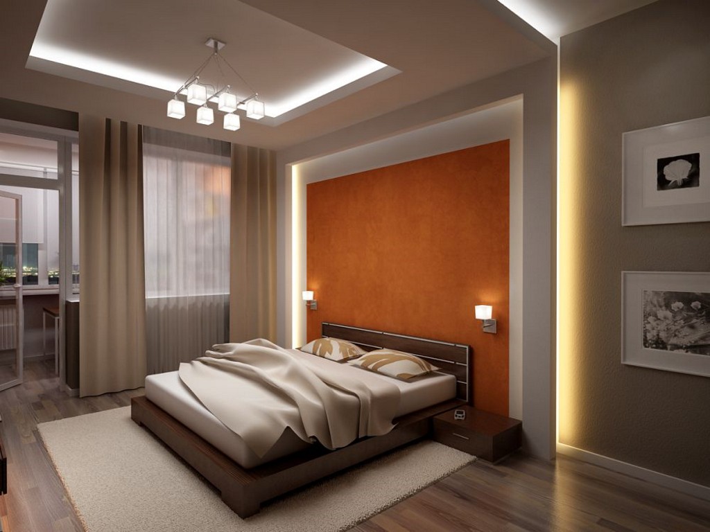 Η ασύμμετρη τοποθέτηση των επίπλων σε συνδυασμό με την αρχική διακόσμηση τοίχων θα φέρει ένα άθικτο άγγιγμα στο συνολικό σχέδιο.. Ένας σημαντικός ρόλος δίνεται στην επιλογή ενός χώρου για να εγκαταστήσετε ένα άνετο κρεβάτι. Μπορεί να εγκατασταθεί τόσο κατά μήκος όσο και κατά μήκος των χώρων. Όλα εξαρτώνται από το συνολικό πλάτος του. Για να κρύψετε οπτικά την επιμήκυνση του δωματίου, ορίστε μικρό ντουλάπα στη στενή πλευρά, διακοσμημένα με όμορφους καθρέφτες.