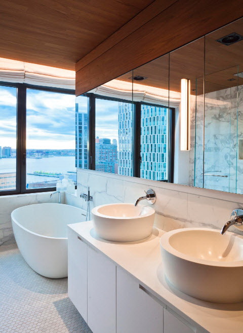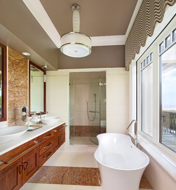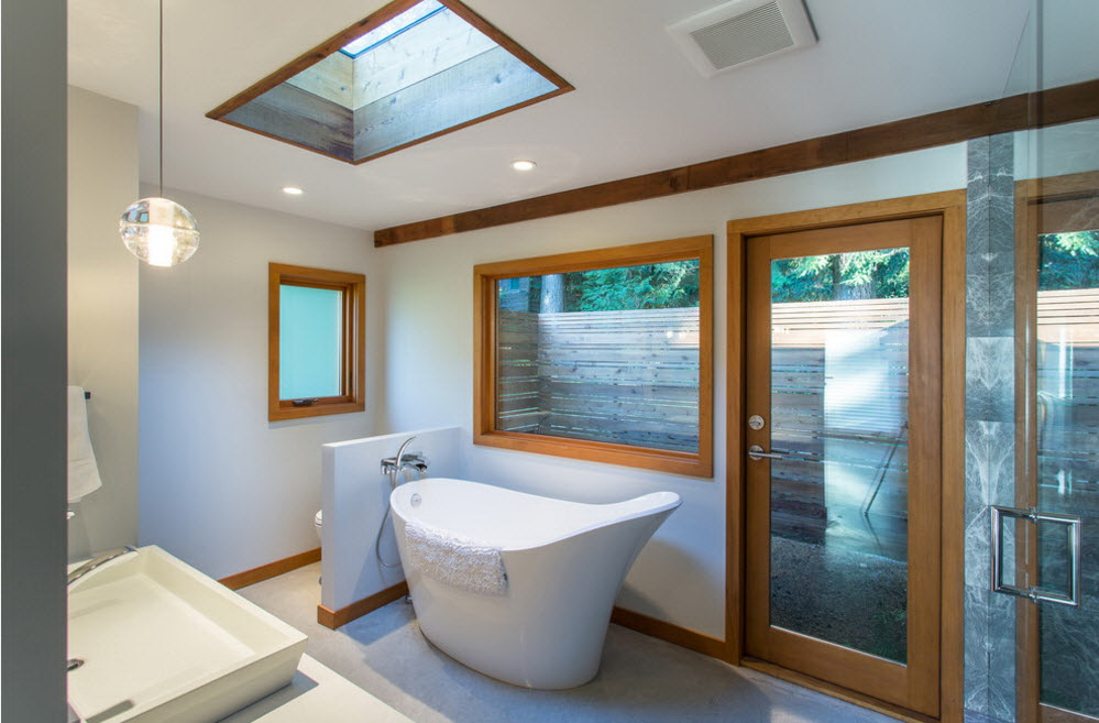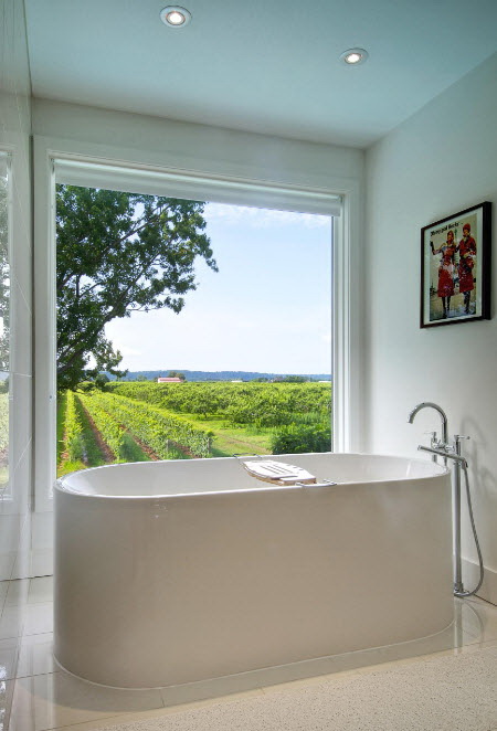 - Neutro. Branco, tons claros de outras cores - uma ótima solução neutra que lhe permite não alocar um banho, mas ao mesmo tempo não o ajusta no interior para que se misture com ele. Um pouco mais tradicional.
